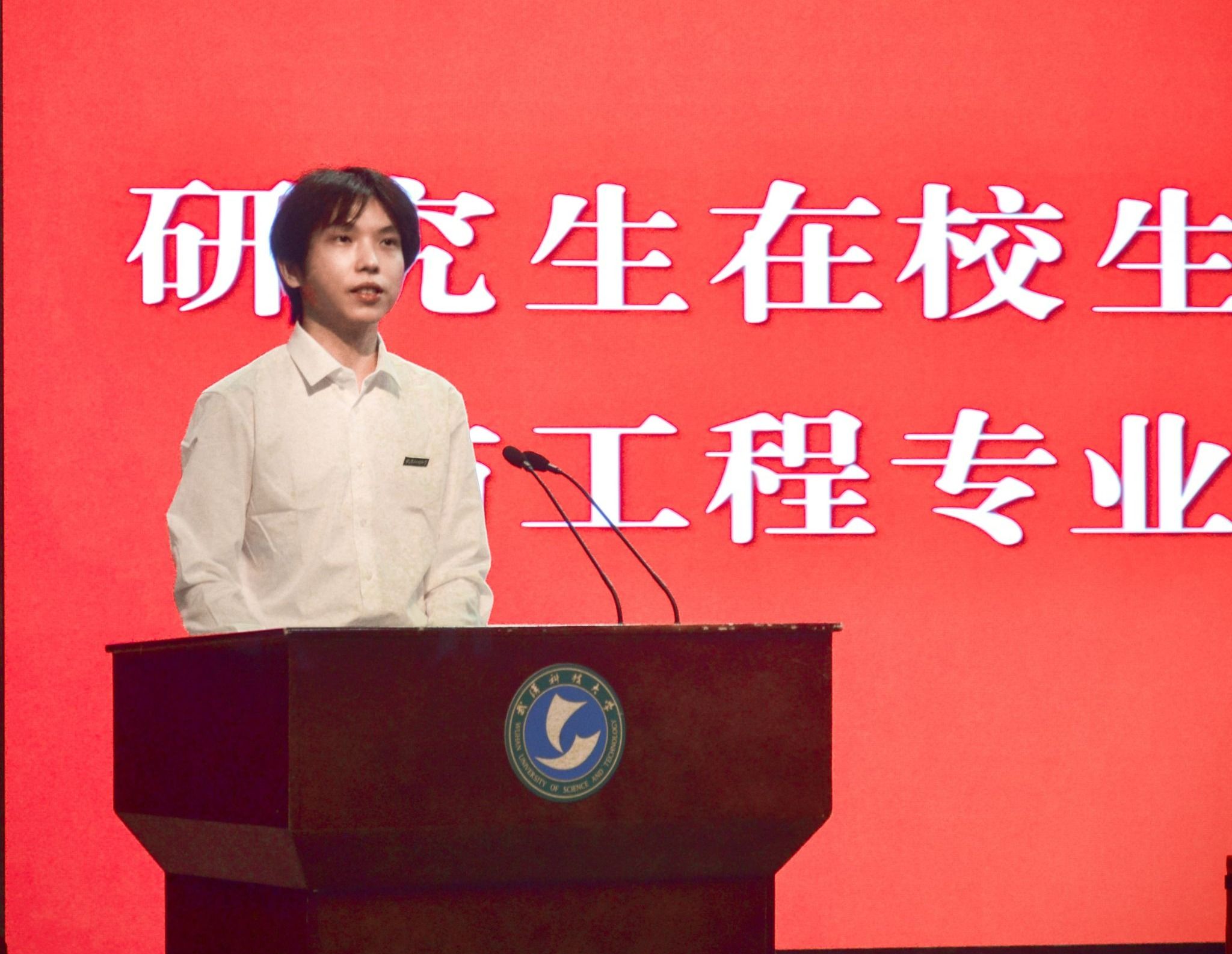 在校生代表、材料学部材料科学与工程专业2020级博士研究生陈哲结合自己的学习科研经历,分享心得体会,强基础,需要耐心琢磨和沉淀;阔视野,需要勇于拼搏和尝试;树自信,需要理智审视和乐观,祝愿大家都能够在武科大成为更好的自己。