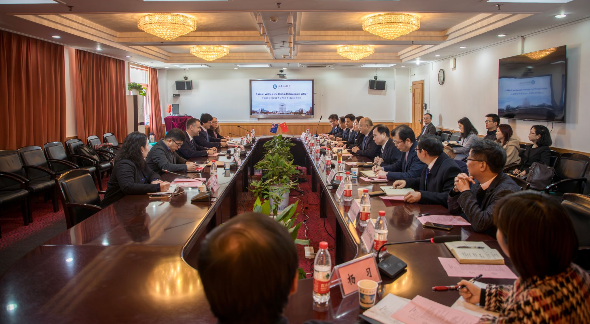 武科大网讯 11月14日,澳大利亚迪肯大学副校长Nick Birbilis率代表团访问我校,校长倪红卫会见代表团一行并座谈。校党委副书记孙国胜参加会议。