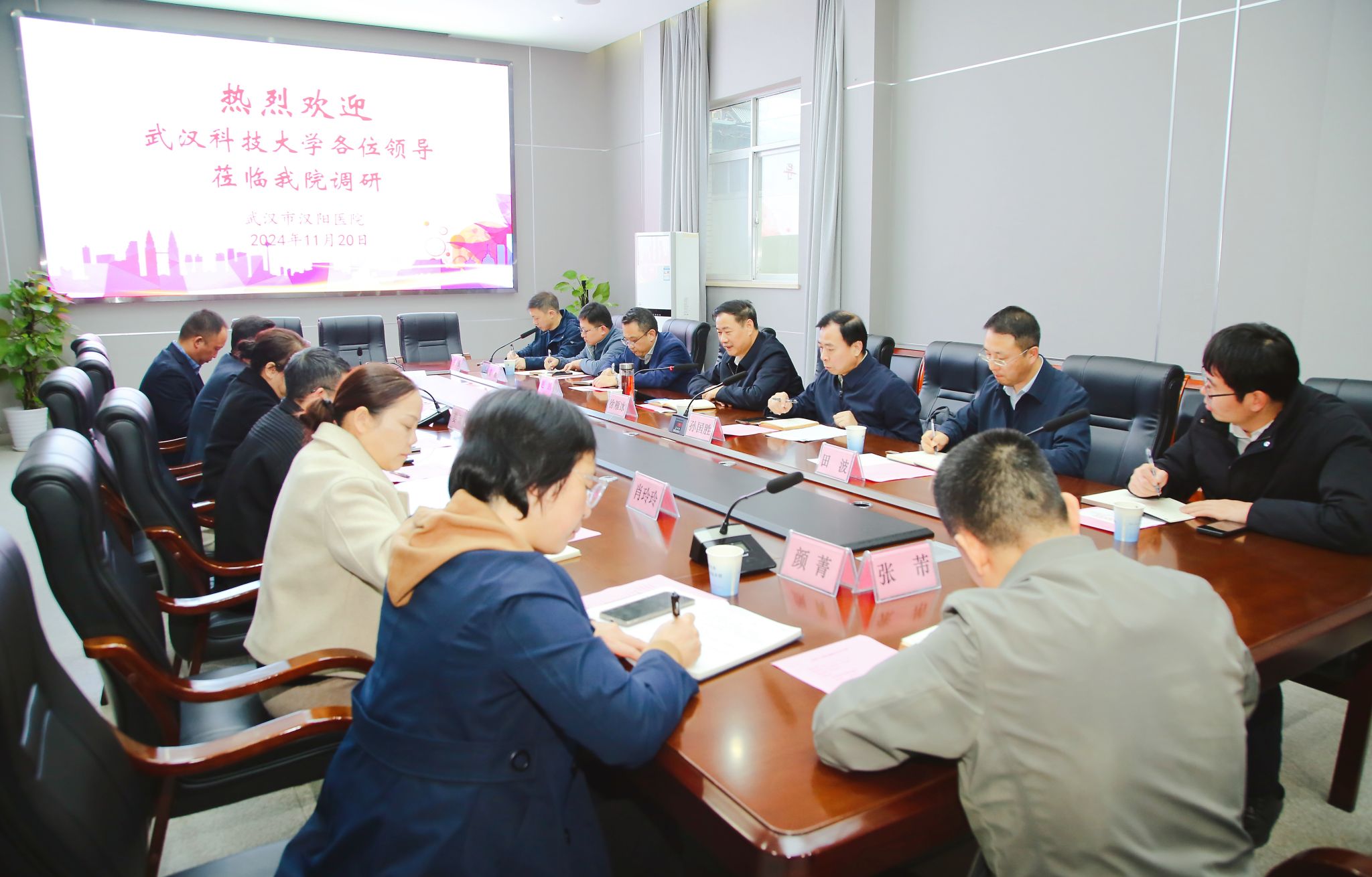 学校党政办公室、医院管理处、医学部相关负责人,普仁医院、汉阳医院全体领导班子成员及相关部门负责人参与此次调研座谈。