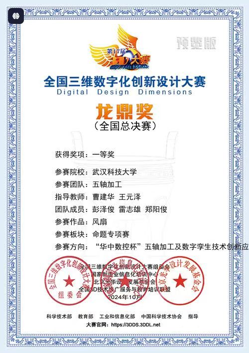 武科大网讯 11月18日,第17届全国三维数字化创新设计大赛“华中数控杯”五轴加工及数字孪生技术创新应用专项赛全国总决赛在大连理工大学落下帷幕。我校队伍充分发挥综合实践创新能力,从来自华中科技大学、北京航空航天大学、吉林大学等全国60余所高校的100余支队伍脱颖而出,荣获全国一等奖1项、三等奖1项。