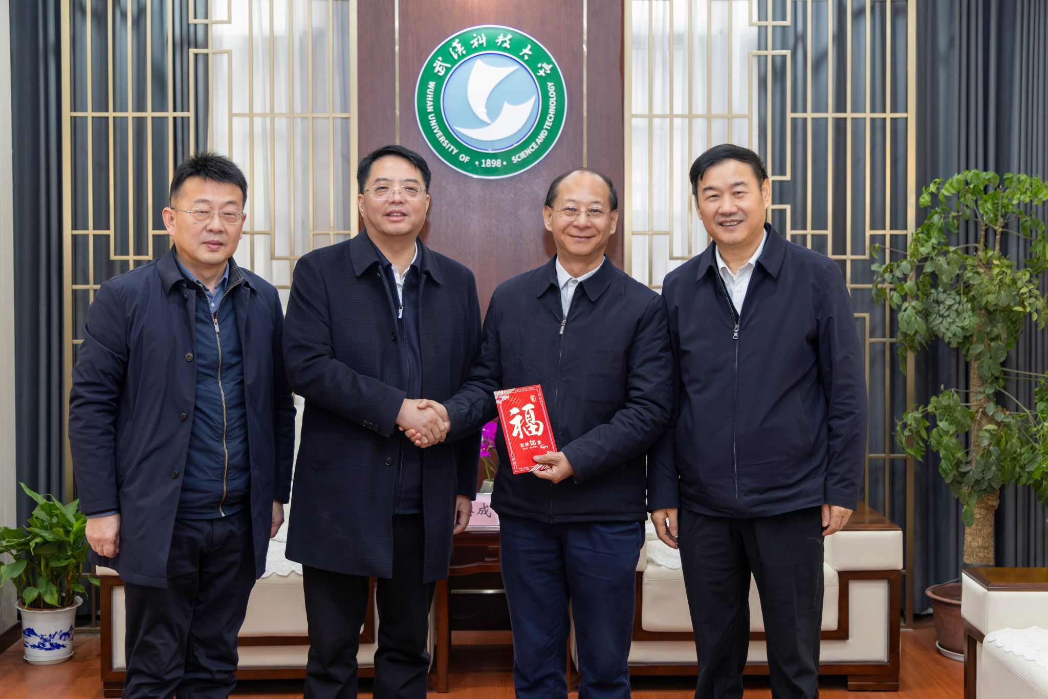 武科大网讯(记者陈孖川)1月23日上午,青山区委书记余志成来校慰问俄罗斯工程院院士、高性能钢铁材料及其应用省部共建协同创新中心常务副主任吴开明教授。青山区委常委、区委办公室主任傅谦,化工园区管委会副主任王小兵,校党委书记徐雁冰、党委副书记沈季伟、副校长吕勇陪同慰问。
