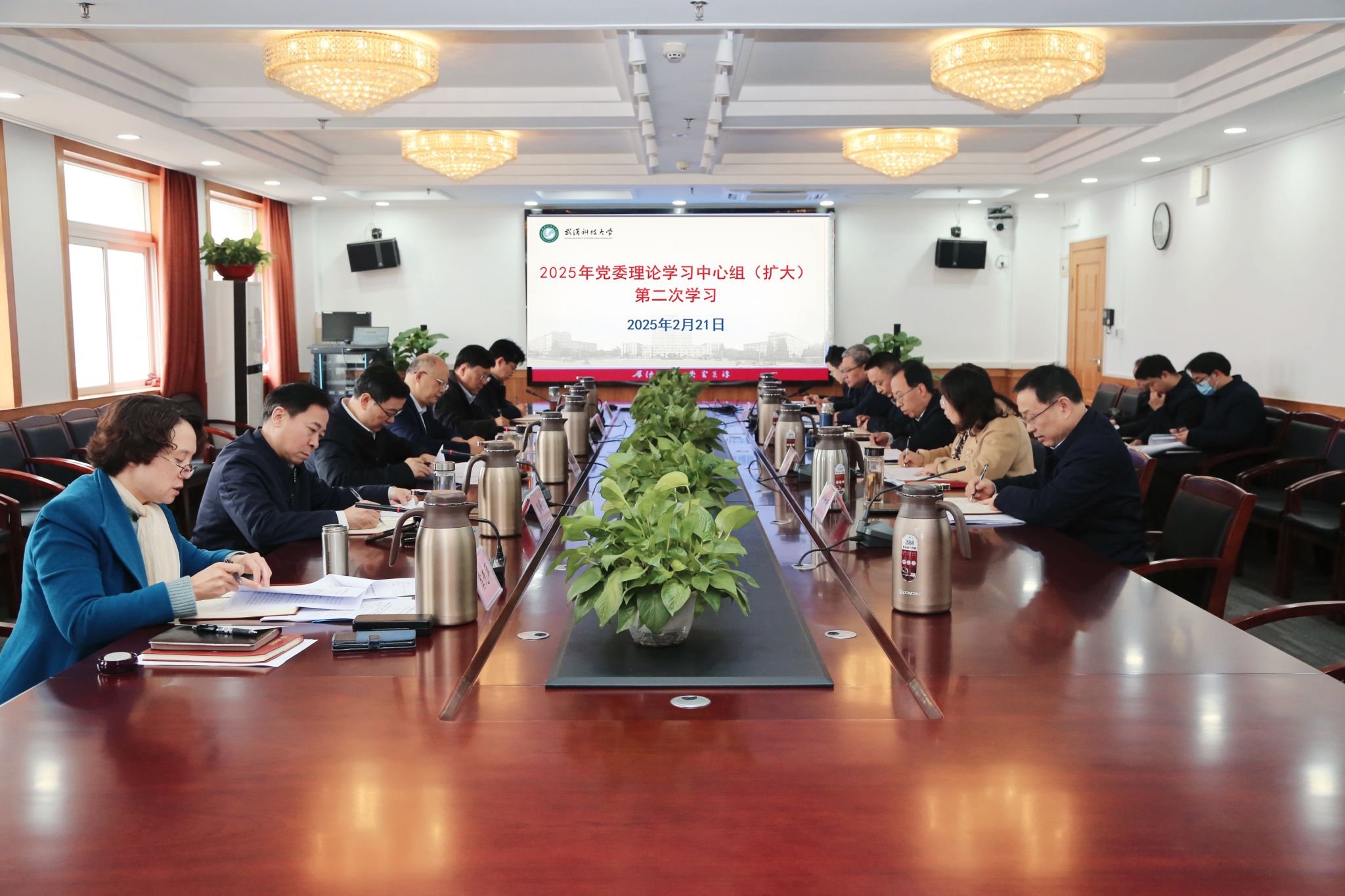 武科大网讯 2月21日,学校在青山校区主楼1610会议室举行2025年党委理论学习中心组(扩大)第二次学习。党委书记徐雁冰主持学习会议并讲话。党委副书记、校长倪红卫和全体校领导参加学习。