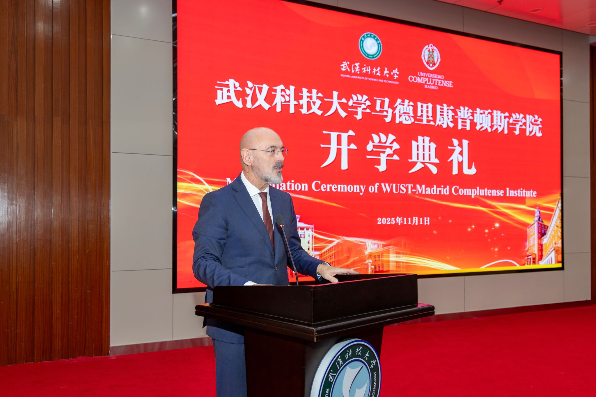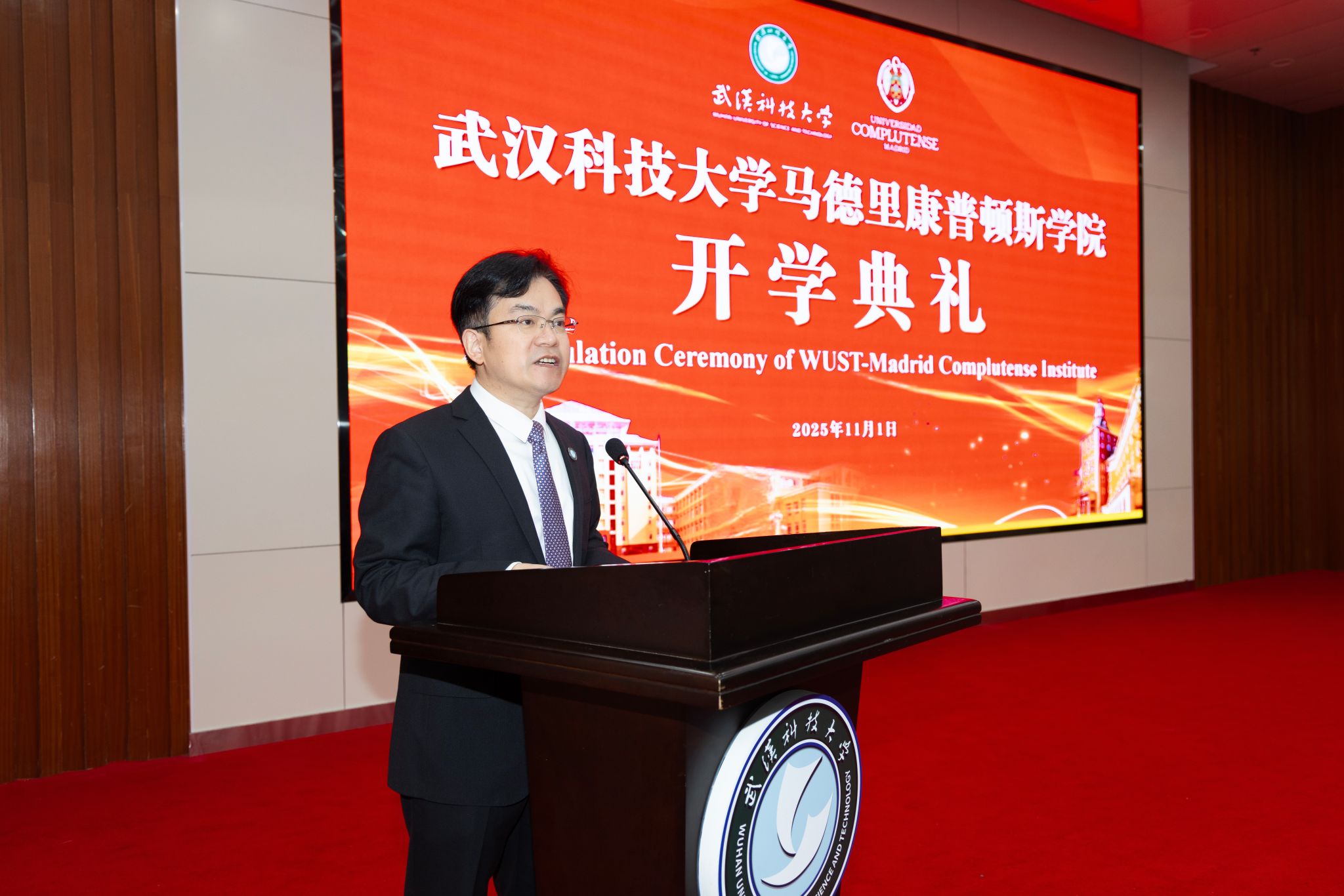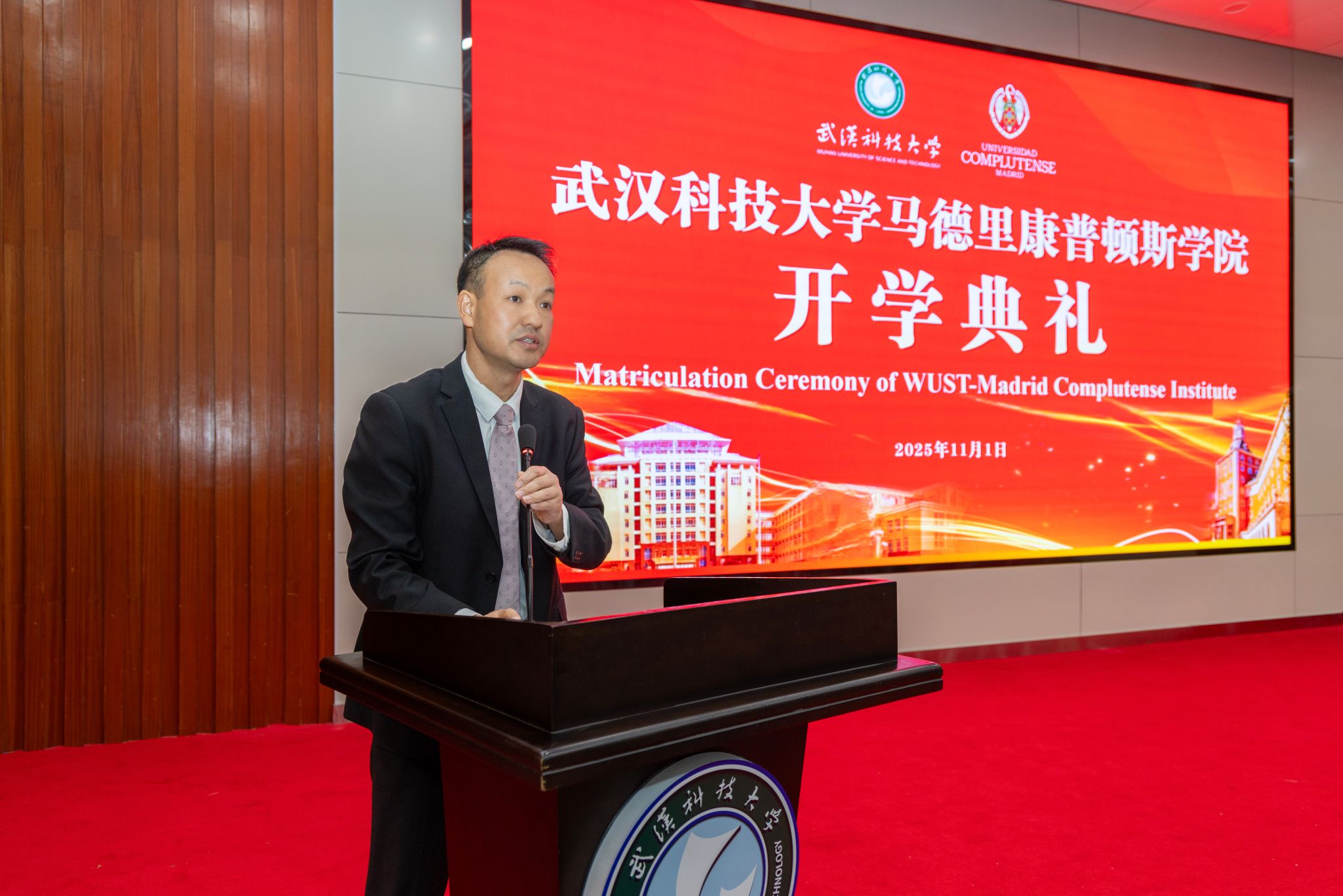 马德里康普顿斯大学统计研究学院院长克里斯托·帕雷哈、计算机科学与工程学院院长路易斯·安东尼奥和武汉校区执行校长胡安·卡洛斯先后发言,介绍了学院特色与未来规划,勉励同学们勇做探索者与创造者。2025级新生代表宋俊锐在发言中表示,将汲取中西智慧精髓,为推动科技进步与跨文化交流贡献青春力量。