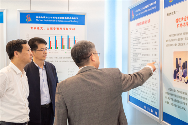 会前,李镇江一行参观了我校省部共建耐火材料与冶金国家重点实验室。