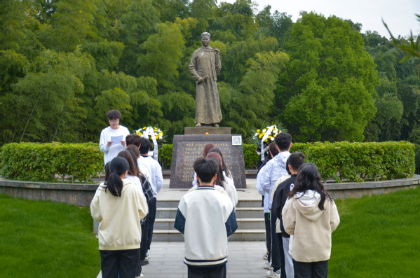 许白昊早年就读于湖北甲种工业学校,该学校正是我校的前身,许白昊用短暂的一生诠释了何为共产党人的初心和使命。自2021年我校许白昊班成立以来,每至清明,许白昊班学生都会来到铜像前祭英烈。“站立在烈士雕像面前,许白昊初心许党、贴近群众、追求真理、孝廉自守的优秀精神品质,跃然呈现在我们面前。”青马班学生蔡宇豪说道。