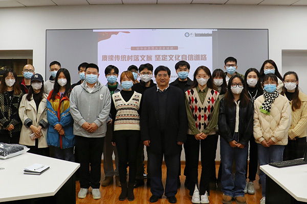 为何要保护传统村落?伍昌友强调传统村落是文化之根。他用数据和调研经验向学生们展示了湖北传统村落的全国比例和内涵价值,告诉他们要保护好传统村落,将中华优秀传统文化转化为乡村振兴创新的活力。他表示:“城市的发展离不开乡村,乡村给城市提供了丰富的资源,虽然城市的生活水平高,但是城市的根在乡村。”