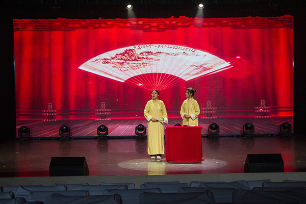 毕业生穆斯塔法•阿里木带来了由他自己改编的手风琴独奏《啊朋友再见》。“我在这首曲子里融入了更多欢快的旋律,大学毕业是向过去的自己说再见,也是迎接更好的未来!”舞蹈《渔光曲》中,一群身穿旗袍的舞者翩翩摇扇,立凳遥望。曼妙舞姿展现了旧上海弄堂里恬静唯美的生活,诉说别样的花样年华。对于毕业生姜雨薇来说,这亦是一次对自己的送别。“在疫情期间举办毕业晚会并不容易,因此我会更珍惜这次表演的机会。”