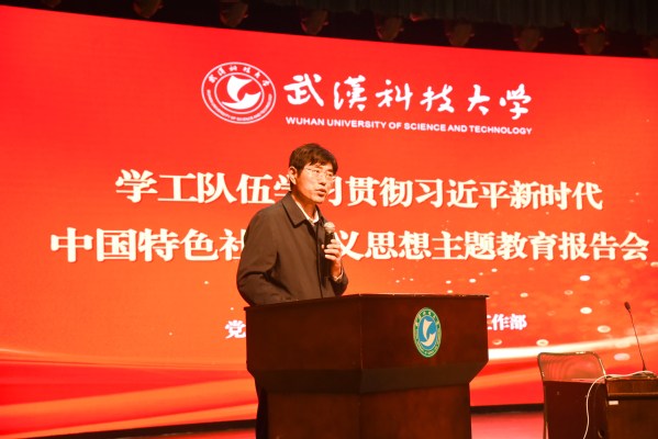武科大网讯(记者叶显伟)4月23日下午,学校学工队伍学习贯彻习近平新时代中国特色社会主义思想主题教育报告会在沁湖礼堂召开。华中师范大学党委学生工作部副部长、思政处处长李刁受邀作主题报告,我校学生工作部、研究生工作部相关负责人出席会议,全体辅导员参加会议。会议由学生工作部副部长鞠磊主持。