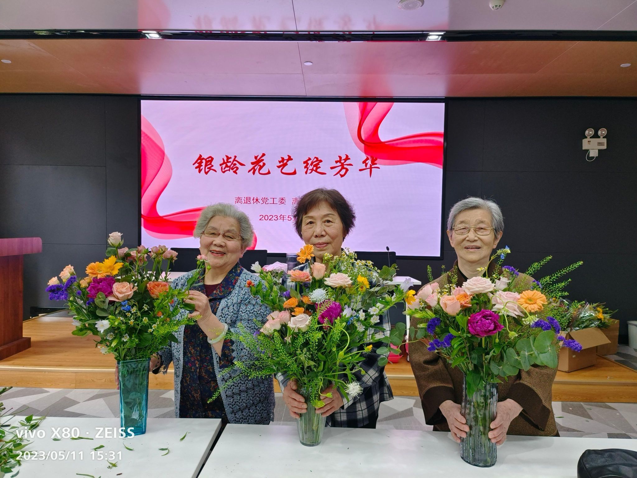 89岁高龄的离休干部黄新宇老师说:“离退休处组织的插花活动太棒了,看着美丽的花朵,闻着沁人心脾的花香,心情都变得美好了,希望以后有机会多多参加这样的活动!”