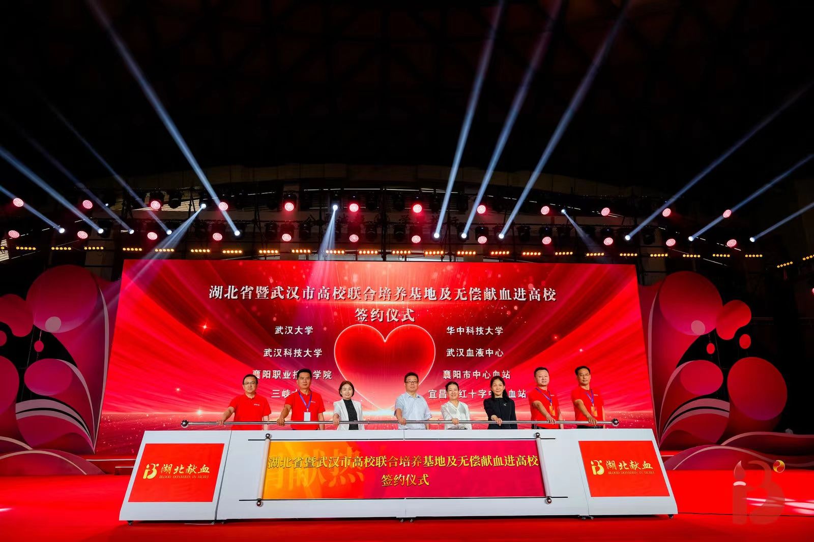 武科大网讯 6月14日上午,湖北省暨武汉市第20个世界献血者日主题宣传活动在武汉举行,我校生命科学与健康学院党委书记王婧、副院长周俊出席活动并参加湖北省暨武汉市高校联合培养基地及无偿献血进高校签约仪式。