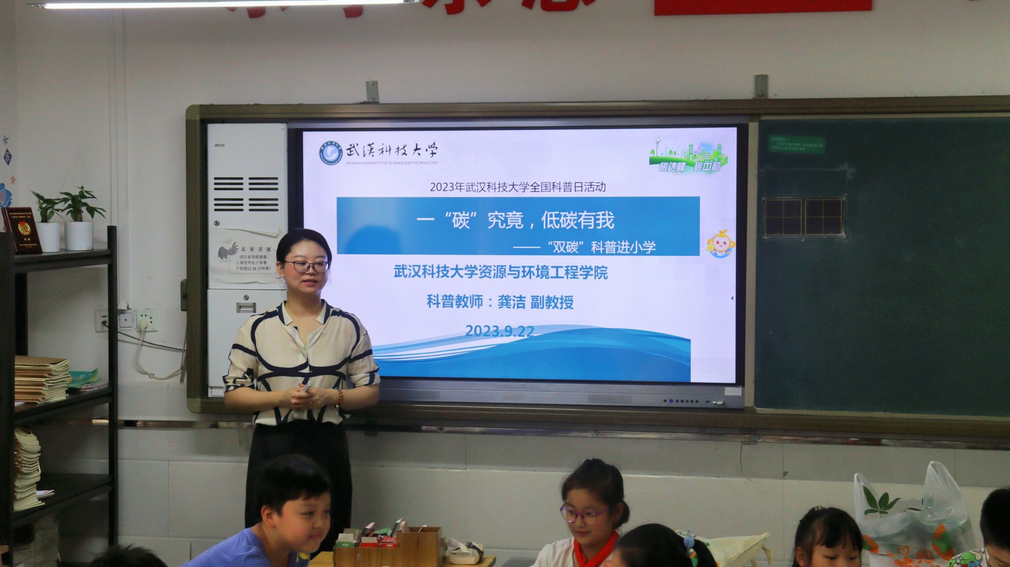 9月22日,资源与环境工程学院副教授龚洁与该院志愿者服务队走进武汉市钢花小学“双减”课堂,以“气候拼贴卡牌”桌游的形式向小学生们讲解气候问题,引领思考日常减碳措施,鼓励学生们用行动助力“双碳”目标的实现。同时,该学院在青山校区开展面向青少年的科普实验课堂,科普安全事故、消防逃生、矿石与矿粉、污水洁净等内容。