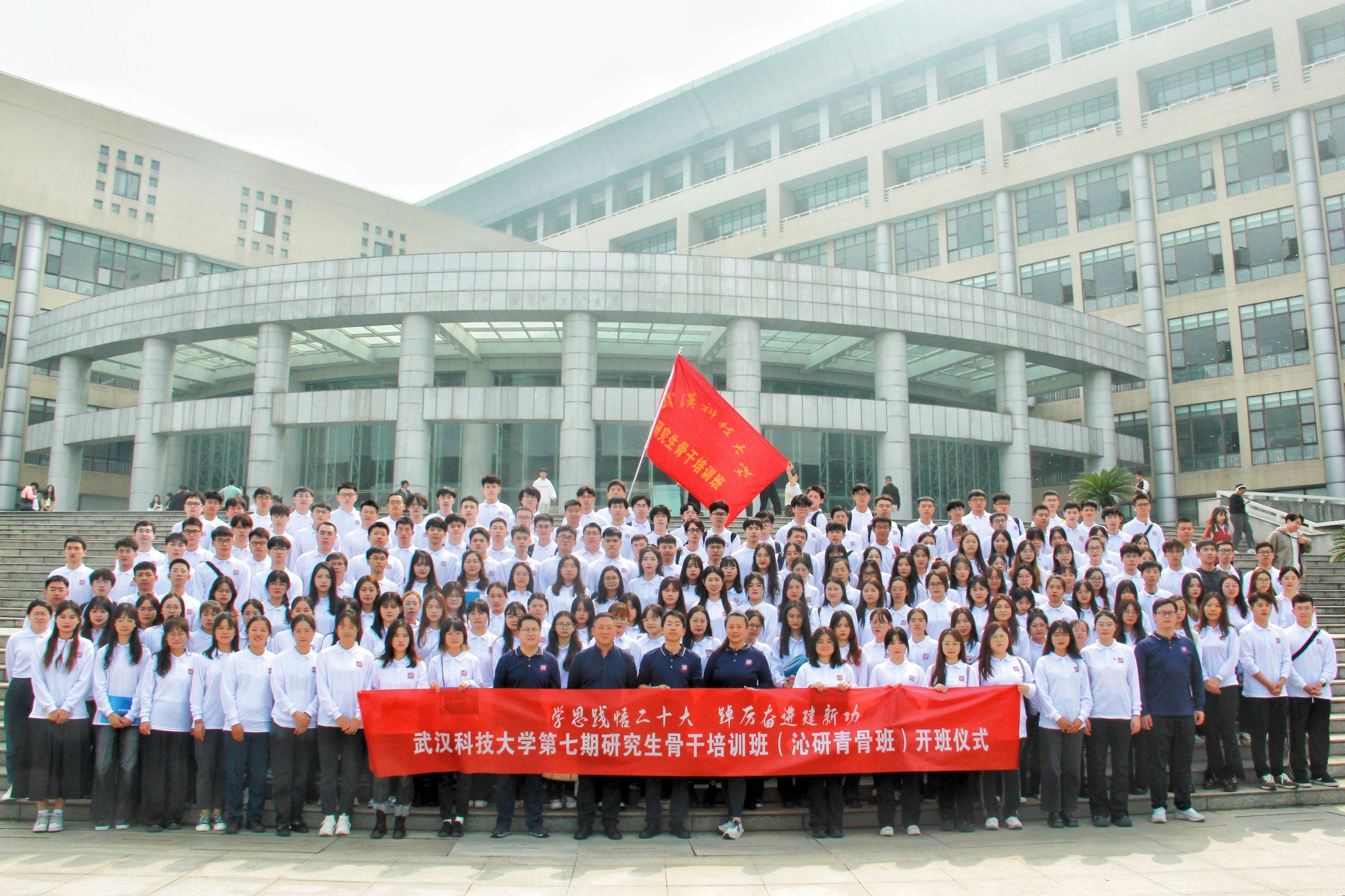 程常桂为第七期研究生骨干培训班授旗,研究生团委副书记崔璨接旗。