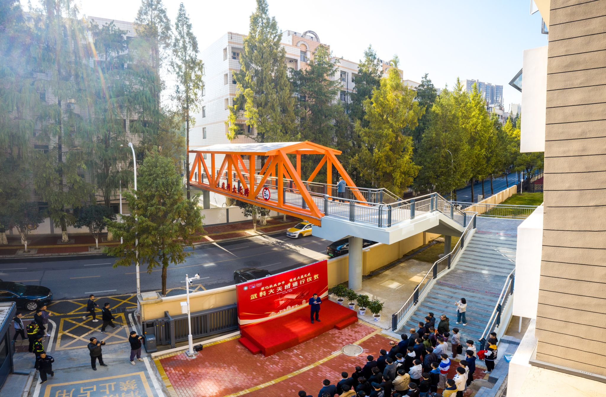 该项目今年7月7日正式开工建设,11月3日竣工。该人行天桥开放后,师生通行旅大街可实现人车分流,有效缓解道路拥堵,大大提高了过街的安全性和通行效率,也为沿路增加一道亮丽的风景线。