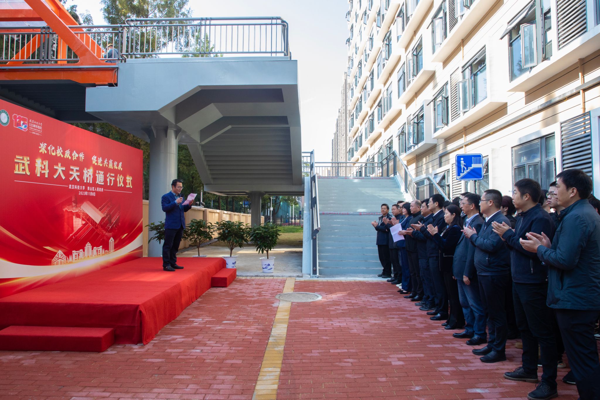 青山区城乡建设局局长宋启娟介绍天桥建设情况。他表示,青山区委、区政府高度重视武科大科大师生日常通行安全,‍‍将武科大天桥工程列为年度城建重点工作。天桥的建成‍‍为学校师生提供了一条空中安全走廊,‍‍从根本上消除了武科大师生日常出行安全隐患,也承载着学校与青山区“连心”“共建”之深意。青山区将继续与学校加强合作,助力学校充分发挥人才、科研等优势,为青山区转型升级和经济发展贡献更多高校力量,共同打造校地合作的示范样板。