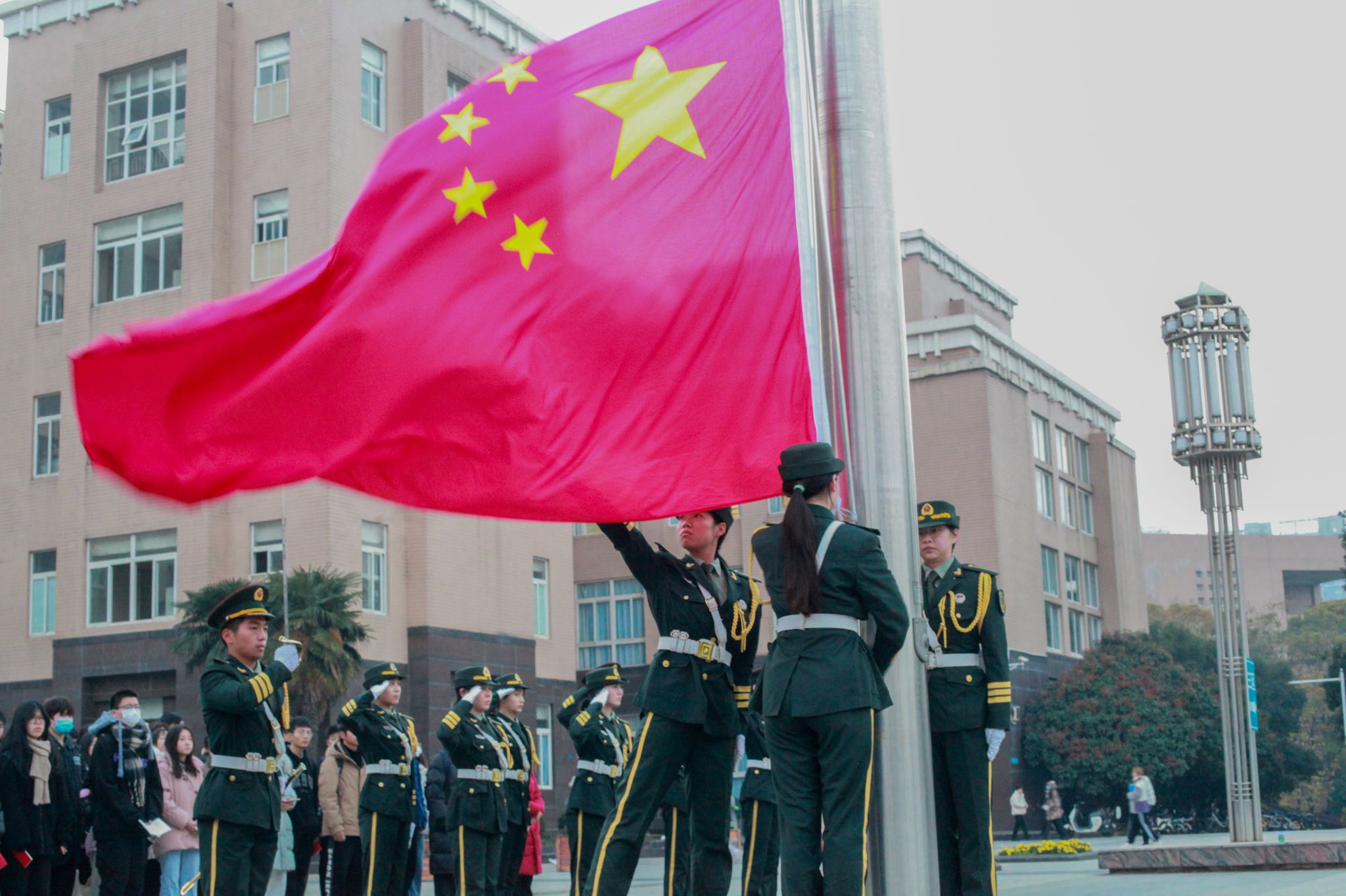 当天清晨,学校在黄家湖校区举行庄严的升国旗仪式。在主持人带领下,师生共同朗诵宪法,面对国旗宣誓:“忠于中华人民共和国宪法,维护宪法权威,履行法定职责,忠于祖国,忠于人民……”现场宣誓的场景令人震撼,每个在场的师生都被宪法的庄严感染。大家一起举行“国旗下的宣誓”是一件多么神圣的事,这才是真正的“长在国旗下”。参会学生张萌萌表示。