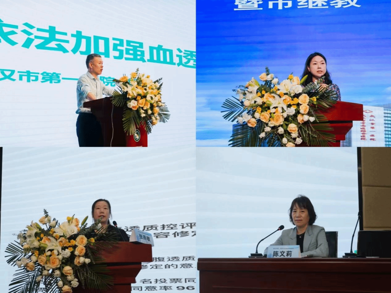 武汉市血透质控中心熊飞主任、武汉市医师协会肾病分会陈文莉主任、武汉市四医院董骏武教授、湖北省人民医院梁伟教授作学术演讲。学术分享环节,专家们围绕血液透析治疗的质量控制、安全管理及最新技术进展等方面进行了经验分享,重点强调了规范操作流程、提升患者安全及舒适度、优化医疗资源配置等对提升血透治疗质量的关键作用。讨论环节,各专家就维持性透析患者钙磷代谢指标达标过程中遇到的问题进行了深入交流。