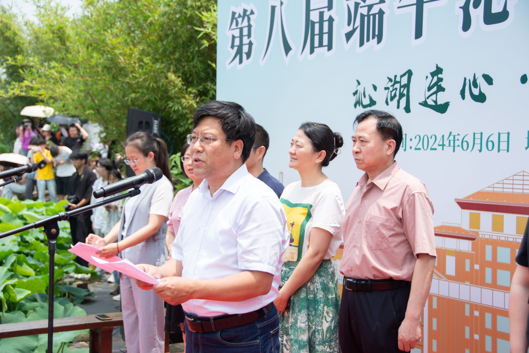 武科大网讯(见习记者刘靖瑶 通讯员朱博文 摄影孙奕哲 母鑫宇 李周阳)“端午舟飞争竞渡,沁水龙腾念九歌。”6月6日下午,我校第八届“沁湖连心·同舟共济”端午沁湖龙舟友谊赛暨端午文化展演于黄家湖校区沁湖举行,师生们齐聚沁湖边,传承端午习俗,感受中国传统文化。校党委副书记孙国胜,党委常委、副校长沈季伟出席此次活动。活动由校团委书记王媛媛主持。
