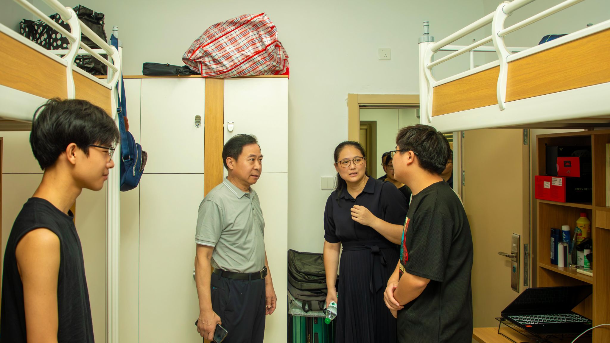 31日上午10点,孙国胜一行走进学生宿舍,与正在整理搬迁物品的学生交流,详细询问他们在校的学习及生活情况,宿舍管理建设的意见和建议以及遇到的困难,细心查看了同学们的床铺、书桌、卫生间等生活设施。