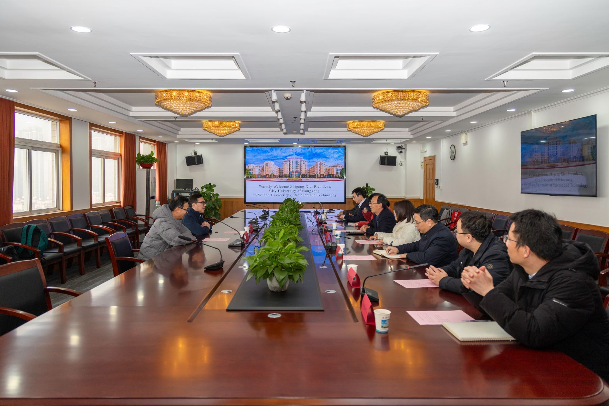 武科大网讯 1月3日,香港城市大学副校长谢智刚一行来访,我校副校长马腾会见来宾,双方就教师互访、博士研究生联合培养等展开了交流。人工智能与自动化学院院长刘斌主持会议。