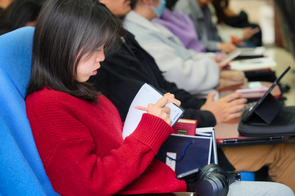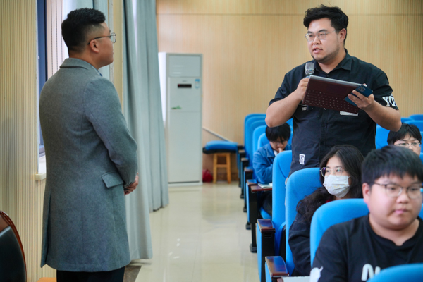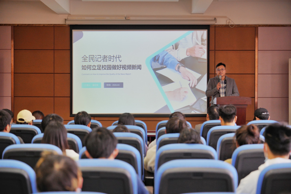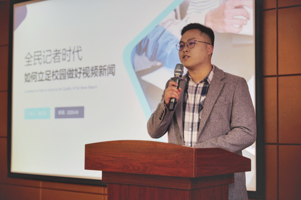 2023年4月6日下午2:30于艺术学院70308会议室,新华社的潘志伟老师赴我校开展视频新闻和短视频的选题、拍摄和制作培训会。(赵婉涛)