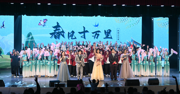 为展现大学生青春活力,给校园增添更多文化气息,我校大学生艺术团于4月8日在沁湖礼堂举办《春风十万里》文艺汇演。经过多日排练,最终给观众带来11个节目,包含器乐合奏、拉丁舞、街舞、古典舞、流行唱、小品等形式。每个节目都十分精彩,观众的惊叹声此起彼伏。中场环节,“猜歌名接下句”小游戏带动全场观众参与,氛围满满。相信随着校园文艺节的带动,武科大学子的生活能够更加精彩美好!(黄宏杰)