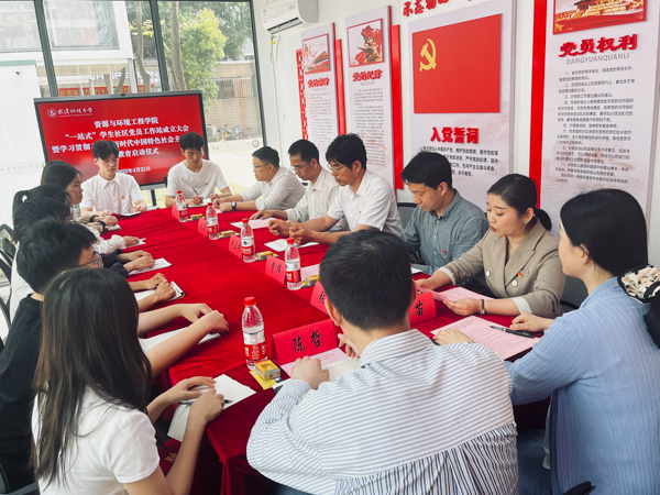 4月21日下午三点,资源与环境工程学院在北苑“一站式”学生社区举行了党员工作站成立大会暨学习贯彻习近平新时代中国特色社会主义思想主题教育活动,校党委学生工作部部长许立桥、资源与环境工程学院党委书记曹伟、资源与环境工程学院院长刘涛、矿物加工工程系教工党支部书记张明党委秘书、入驻辅导员、学生党员代表参加活动。资源与环境工程学院党委副书记张瑞主持活动。(江子琪)