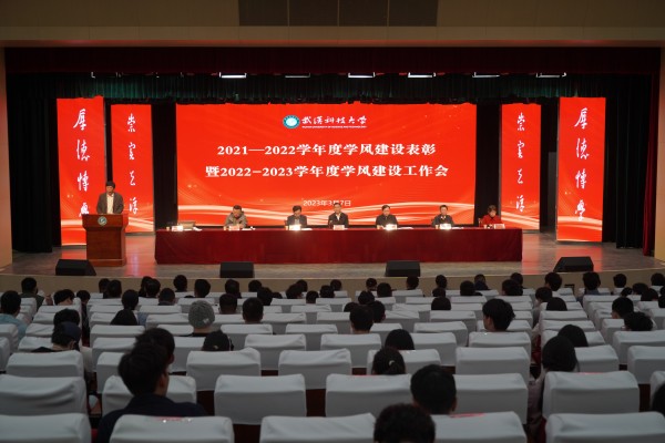 武科大网讯(通讯员李巍峰 张旭 摄影覃宇 夏梦晓)3月7日下午,我校2021-2022学年度学风建设表彰暨2022-2023学年度学风建设工作会在黄家湖校区沁湖礼堂举行。校党委书记徐雁冰,党委副书记孙国胜,党委常委、副校长吕勇出席会议。大会由党委学生工作部部长许立桥主持。