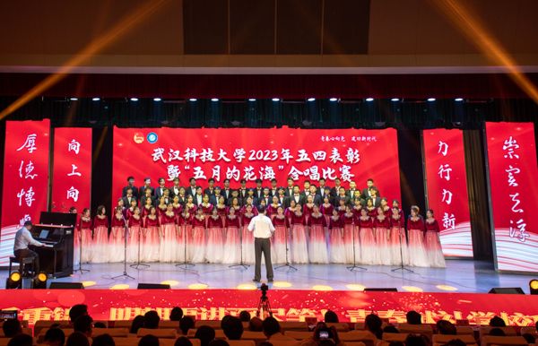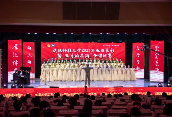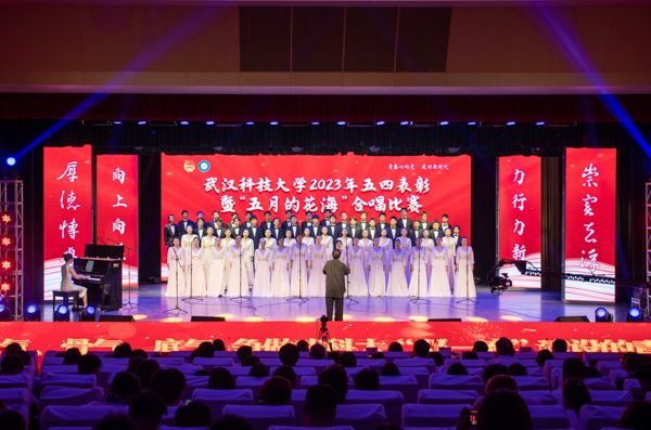 5月4日晚,我校于黄家湖校区沁湖礼堂举办2023年度五四表彰暨“五月的花海”合唱比赛,全体在校校领导出席活动并为“优秀共青团员”“模范共青团干部”“五四红旗团支部”“十大魅力学子”“五四红旗团委”颁奖。获奖个人代表袁鑫和获奖集体代表章健宇发言。“五月的花海”合唱比赛由17支队伍进行演唱,最终材料与冶金学院和管理学院获得一等奖。(王政全 熊雄)
