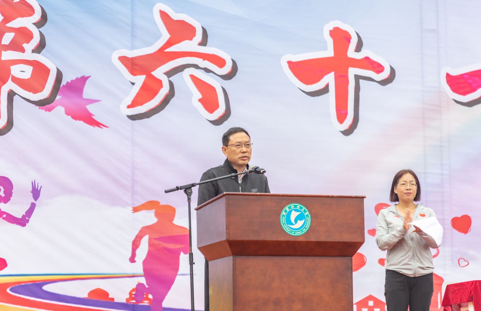 主持人体育学院党委书记院长刘俊洁主持闭幕式 杨佳伟摄