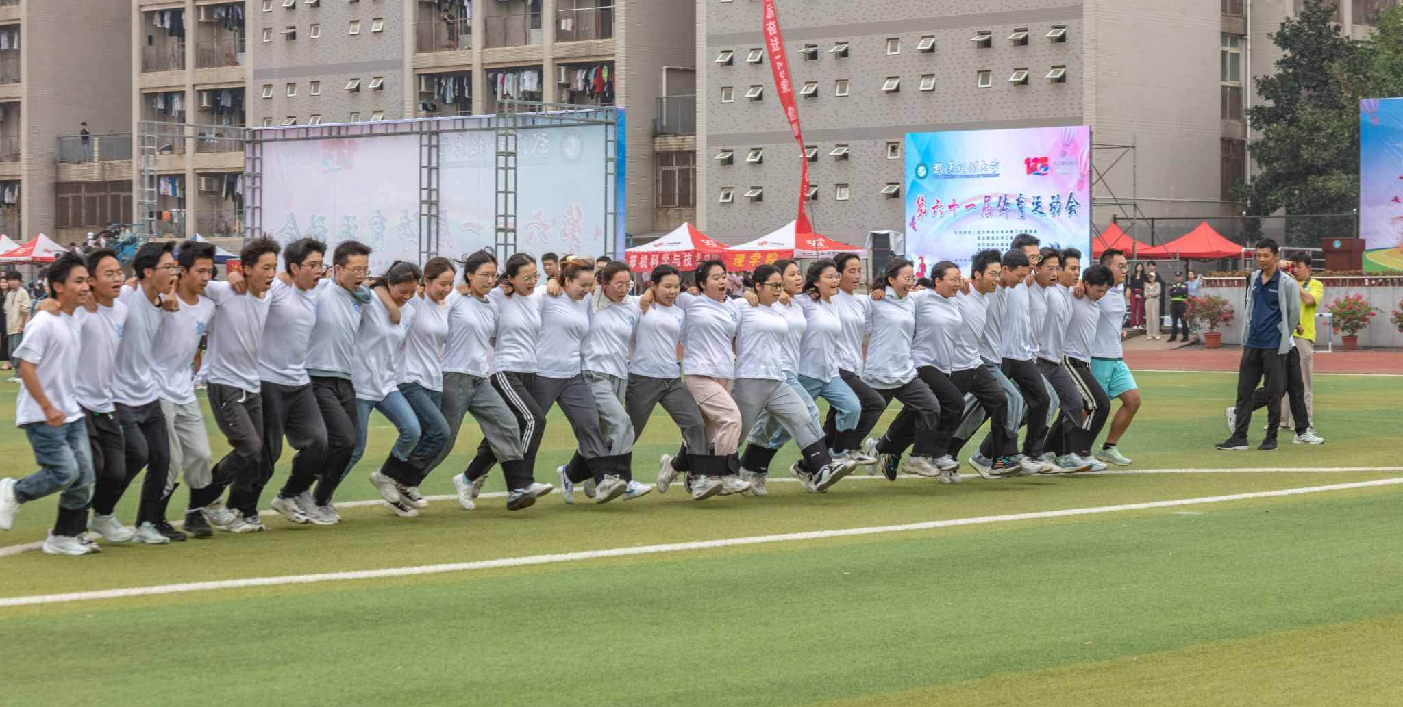 10月26日至28日,我校于南苑运动场举行第六十一届运动会,现场进行了各项田径比赛和集体趣味项目,赛场上运动员们发挥各自优势,在赛场上挥洒汗水,展现了团结、奋进、拼搏、进取的体育精神,各个学院的志愿者们时刻关注运动员的情况,及时为他们送上运动饮料。各个学院的拉拉队也各展绝活为运动员们加油喝彩。(金如梦 郭劼)