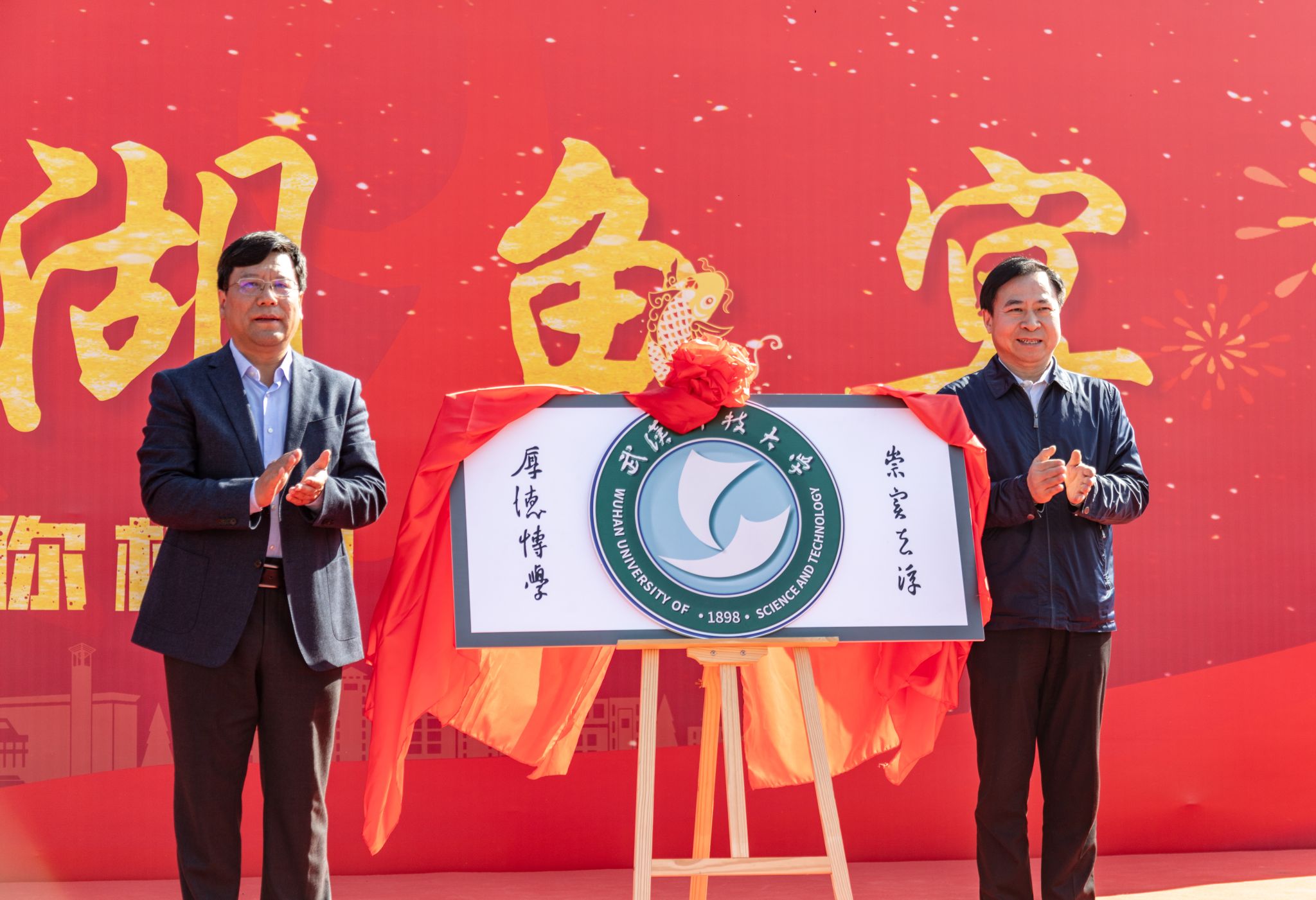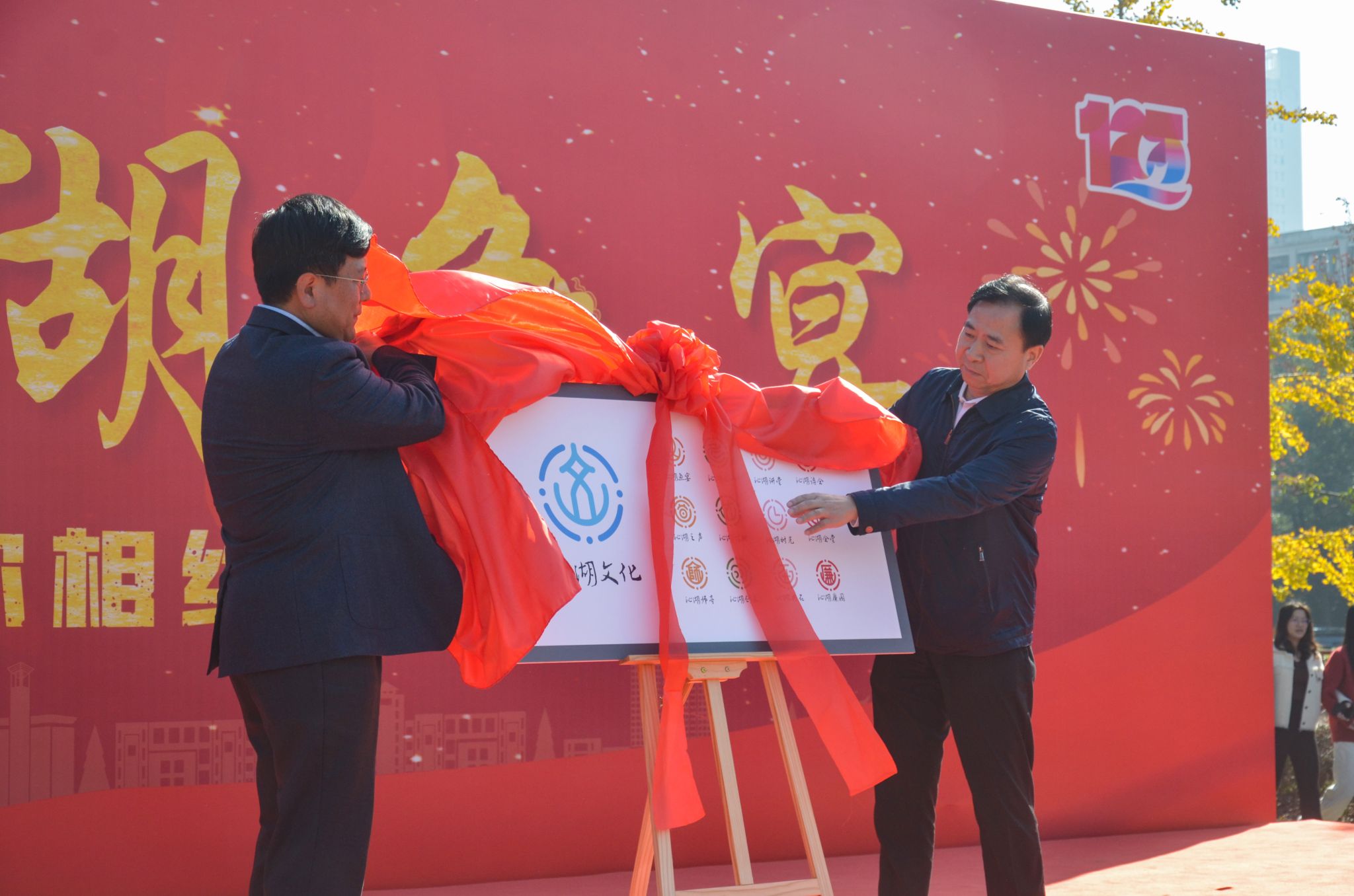 党委副书记孙国胜、副校长沈季伟公布沁湖文化标识 杨佳伟摄