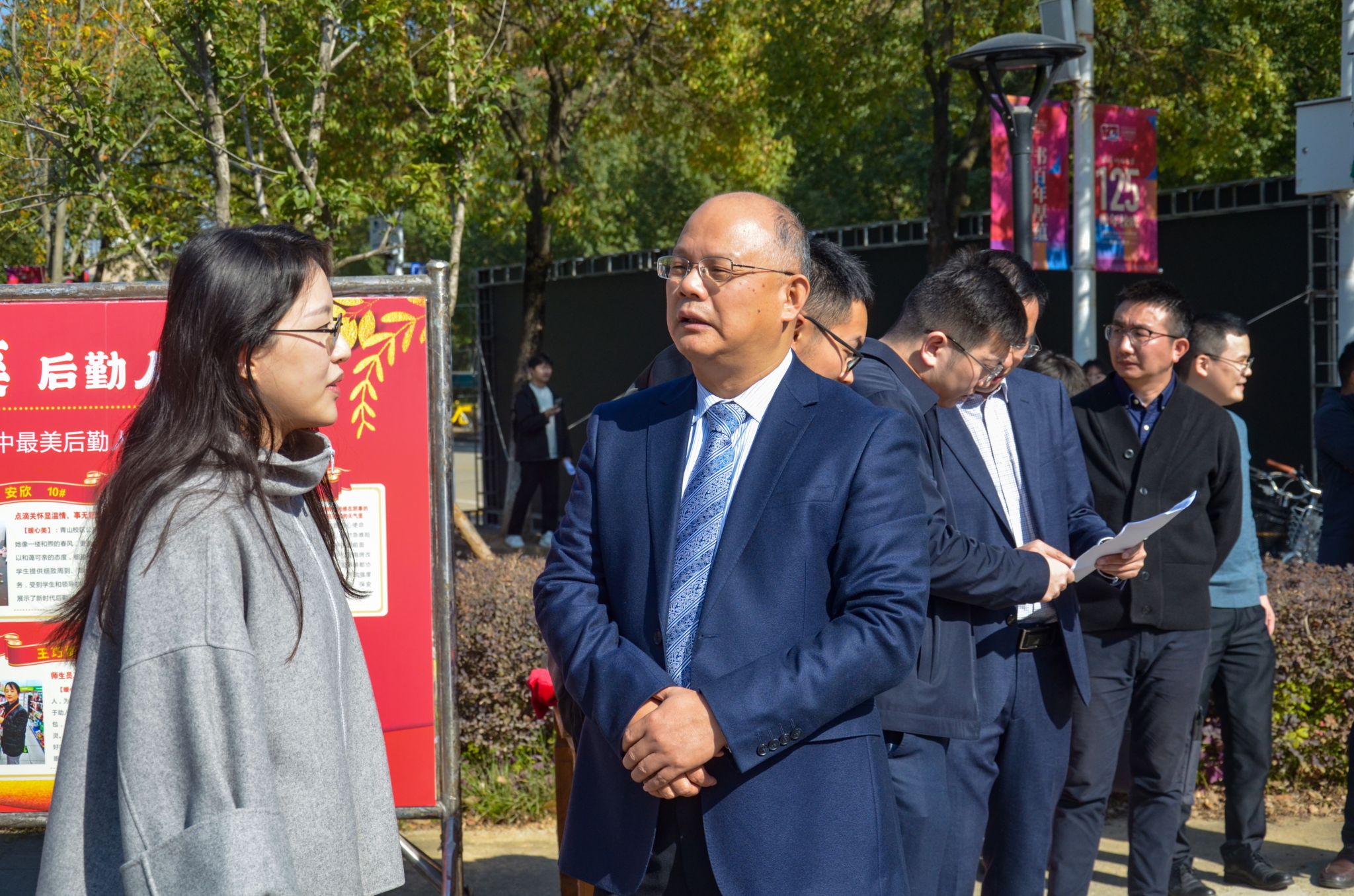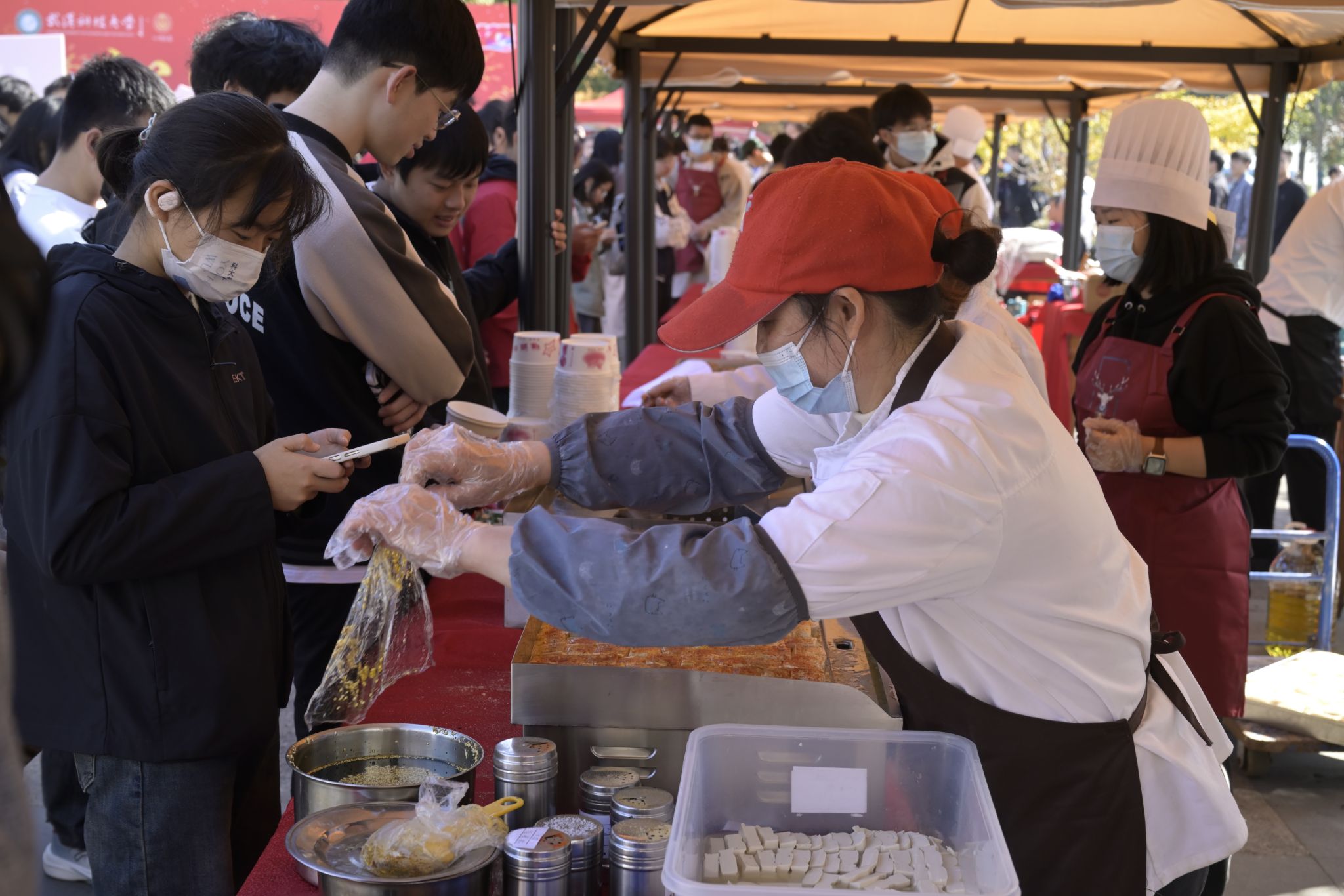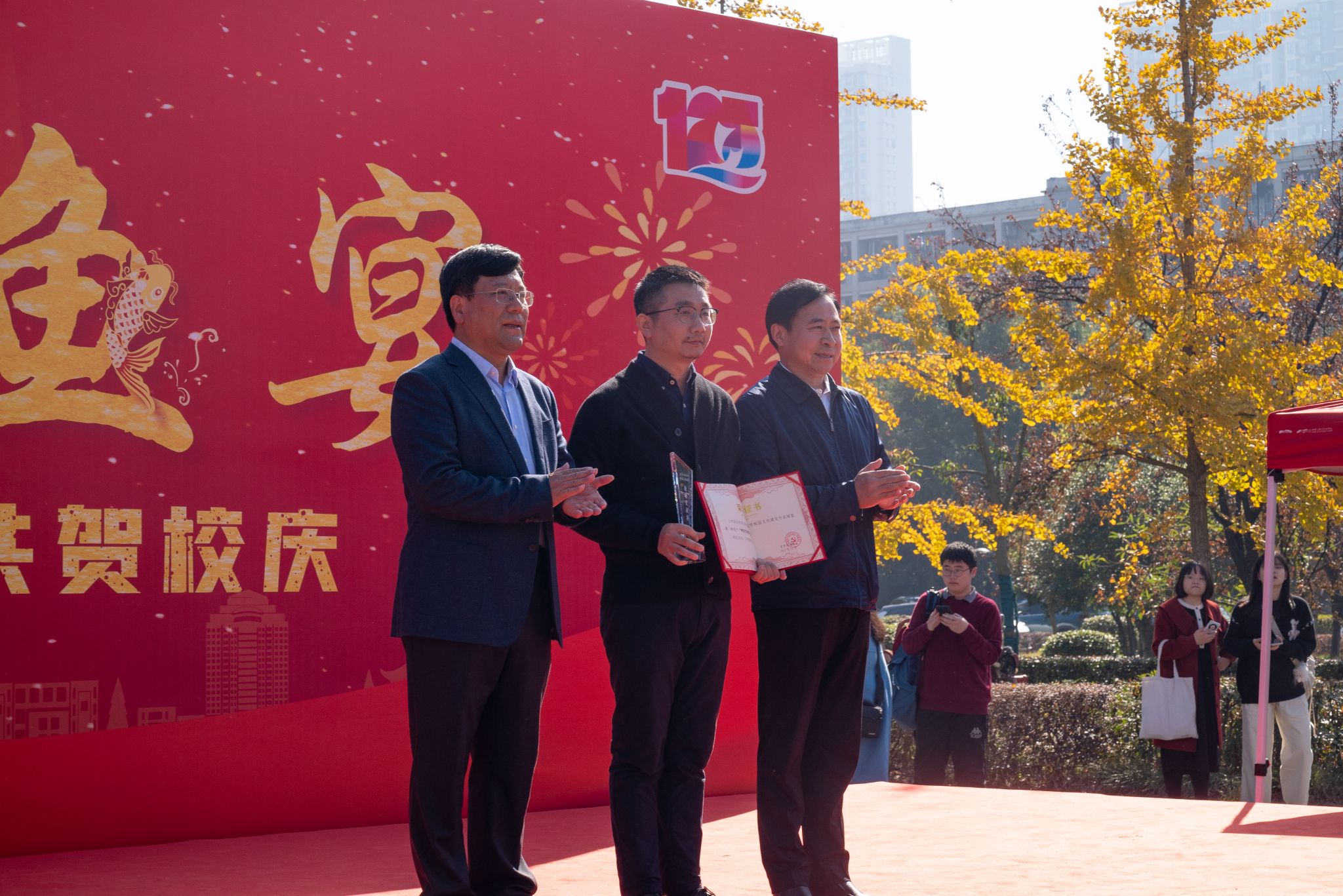 11月21日,我校在南苑食堂广场举行了第九届沁湖鱼宴。本届沁湖鱼宴恰逢建校125周年校庆,校党委书记徐雁冰,校长倪红卫,党委副书记孙国胜,副校长沈季伟出席开幕仪式。党委副书记孙国胜同副校长沈季伟一起为新版校徽,沁湖主题文化标识和校园文化系列丛书揭幕。并为校徽及文化标识设计者,艺术与设计学院副教授王伟老师颁奖。在校长倪红卫致辞后,校党委书记徐雁冰为今年的捕鱼王颁奖并宣布第九届沁湖鱼宴开幕。沁湖鱼宴是我校本着"共建美丽校园,共享建设成果"这一理念,2015年开始精心打造的校园文化品牌,全校师生来到鱼宴现场贺校庆、品鱼宴、逛庙会,在一年一度的“沁湖鱼宴",不仅能吃鱼,更能亲手捕鱼、烹鱼。(高文帅 韩子萱)