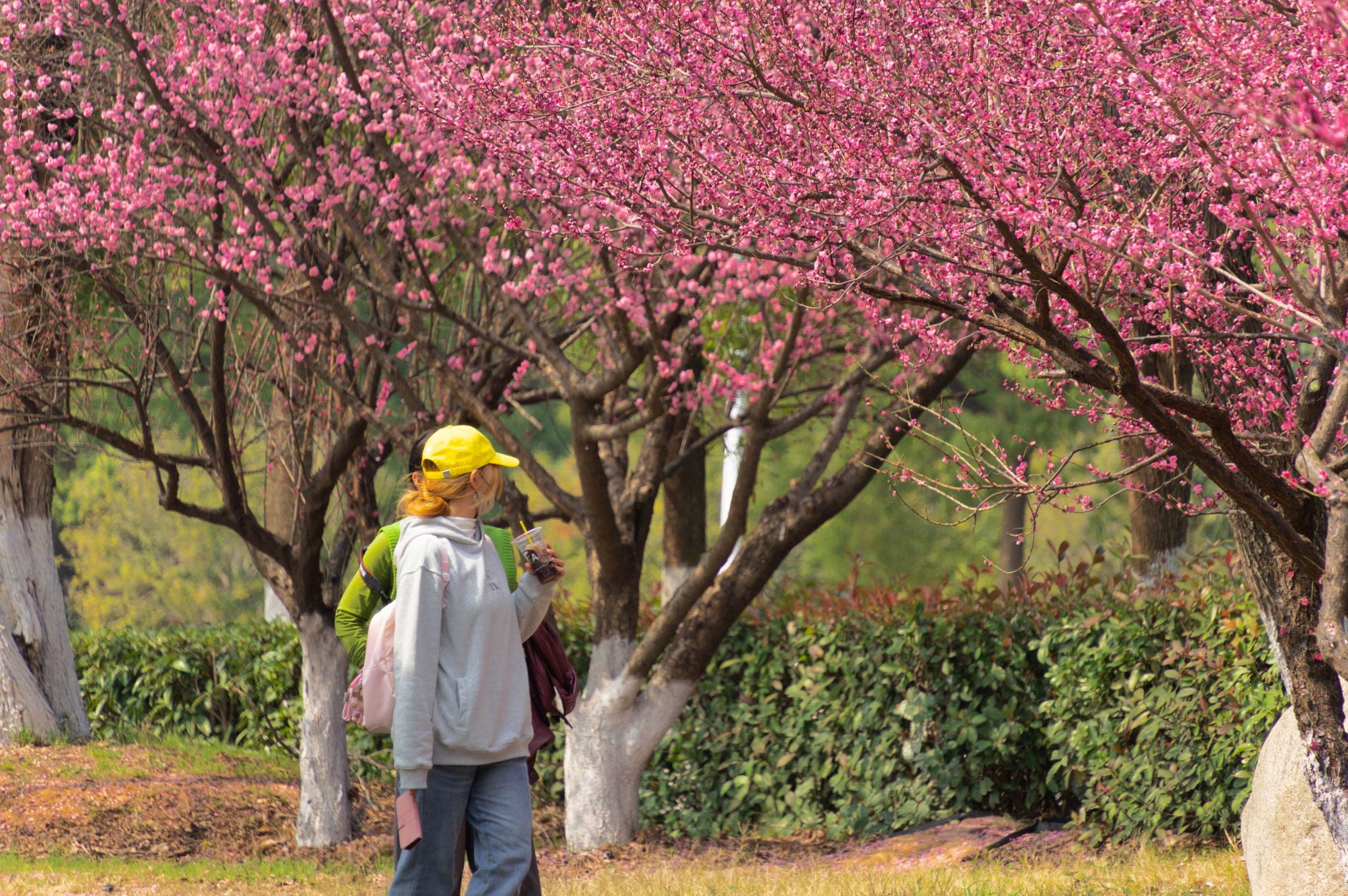 2025年冬末春初,武科大湖区梅花正盛,一片嫣红,引来了许多教工学生前来观梅,学生记者们也记录下了自己镜头下的梅花。