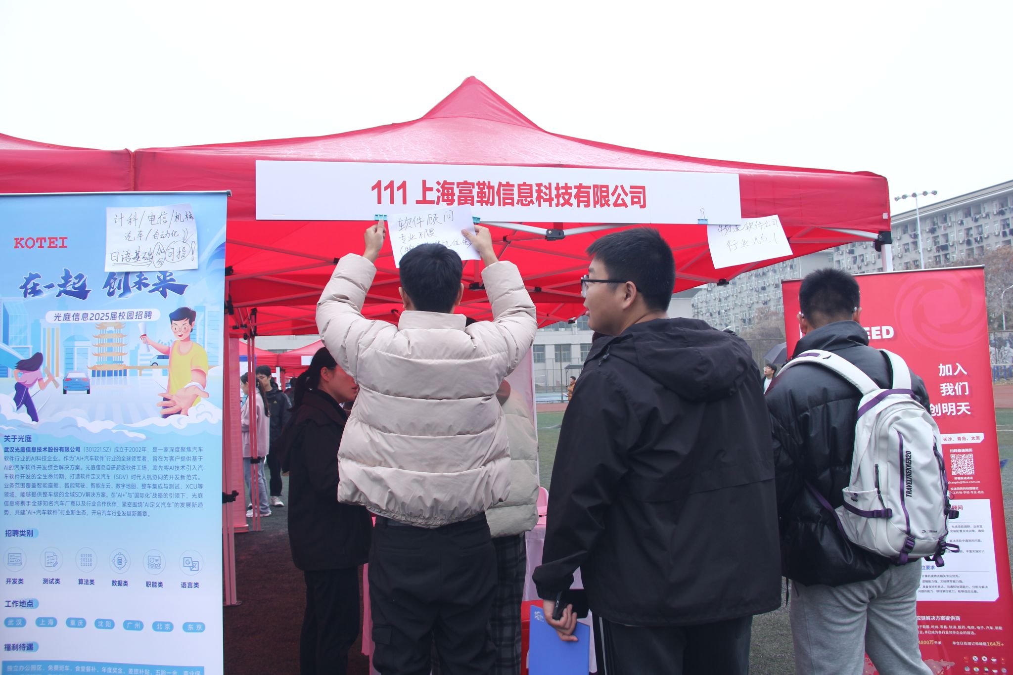 3月11日,我校于北园操场举行了“湖北百校联动”高校毕业生双选会,吸引了许多毕业生前来咨询。