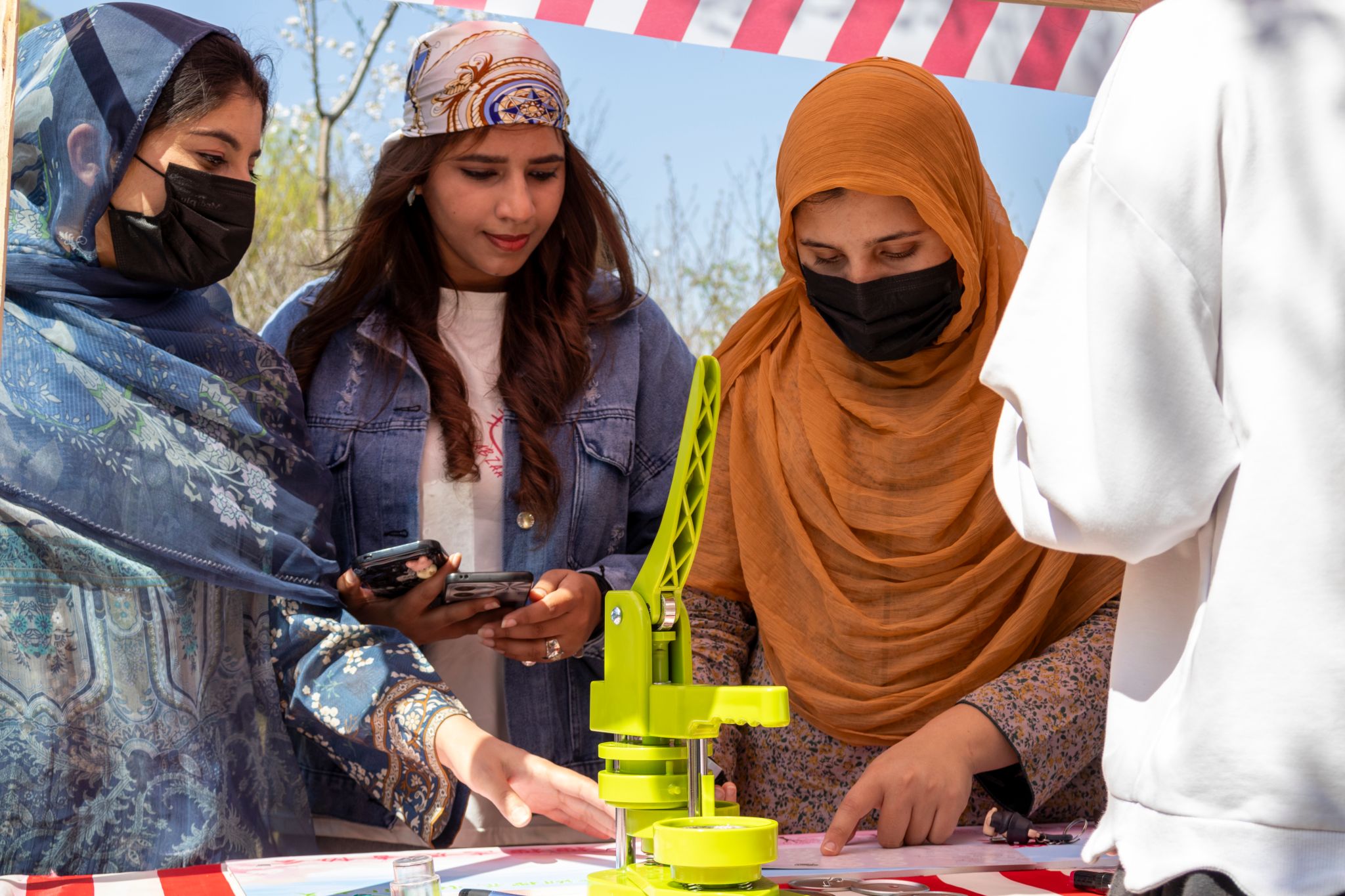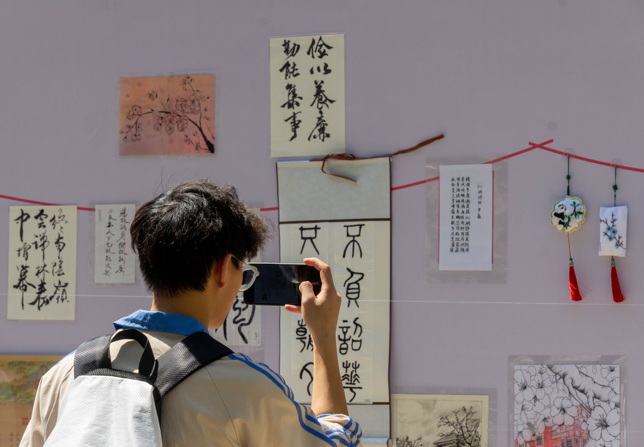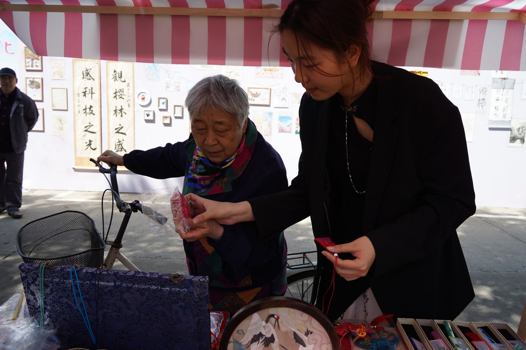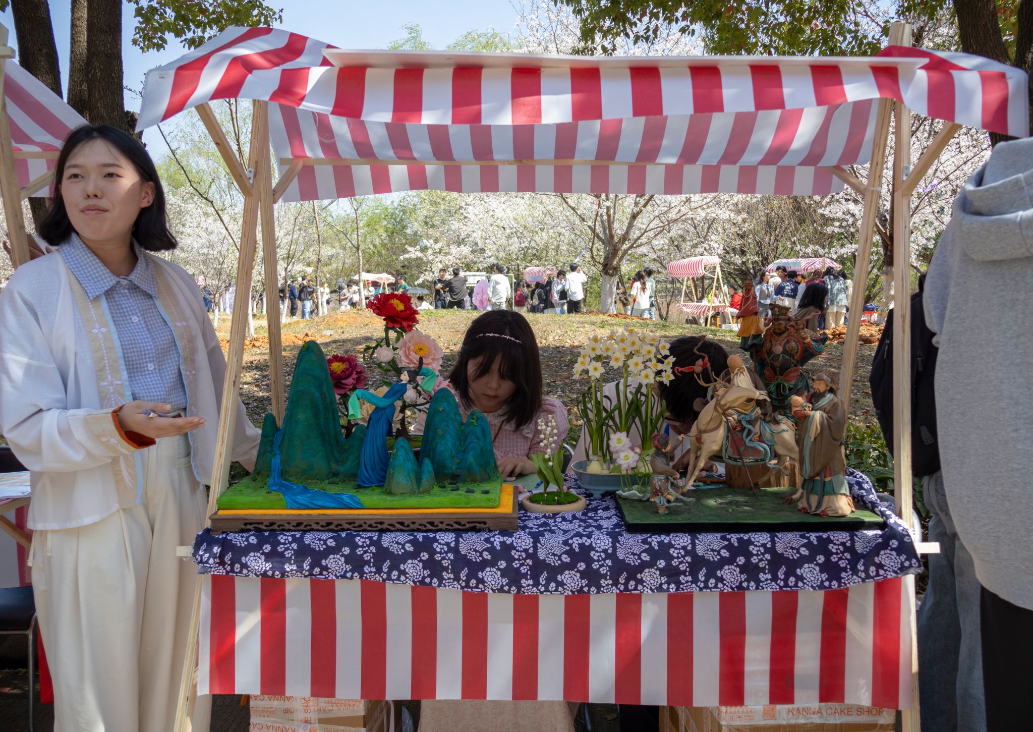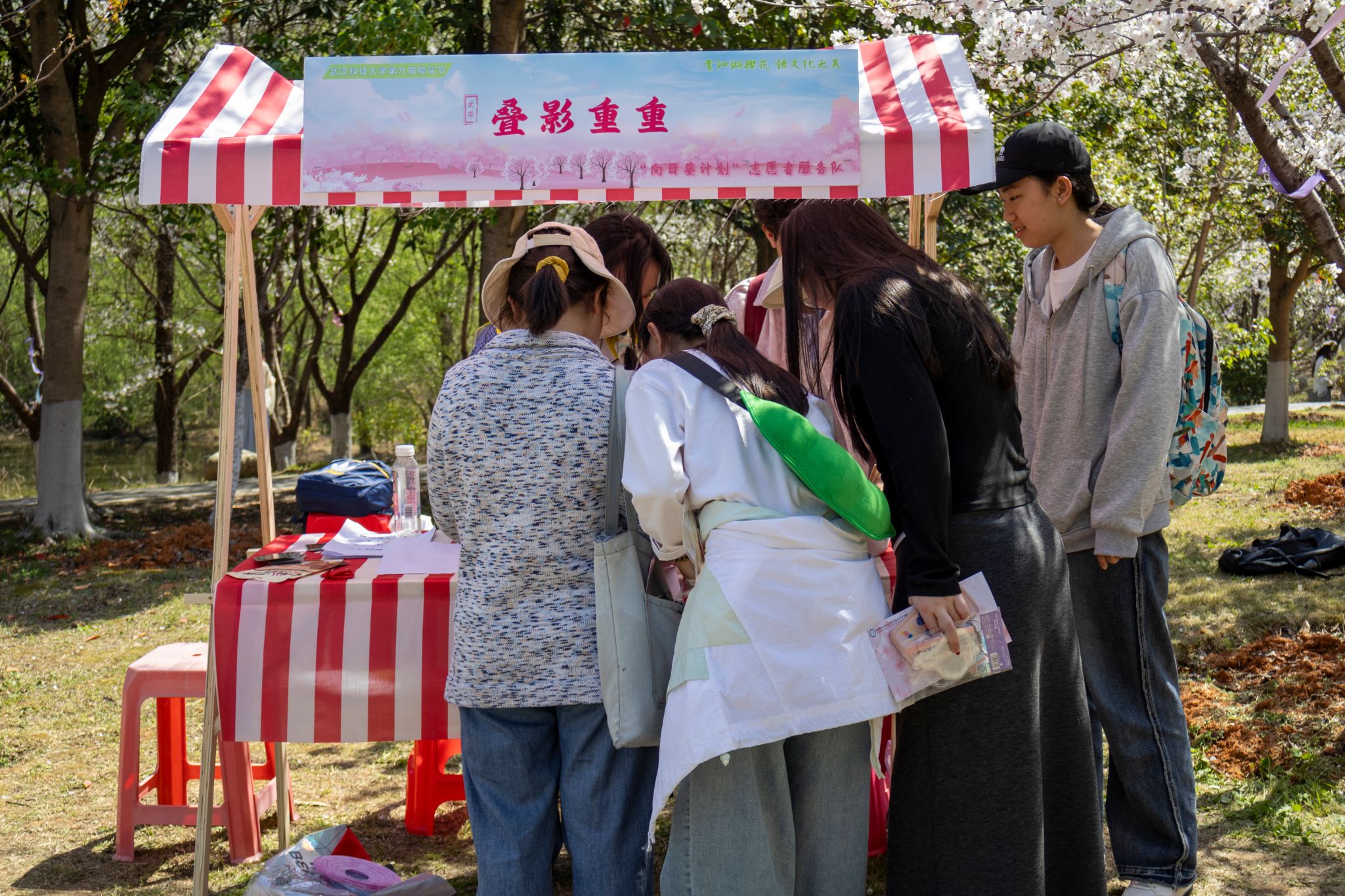 大艺团成员向留学生介绍樱花节 孙正恒摄
