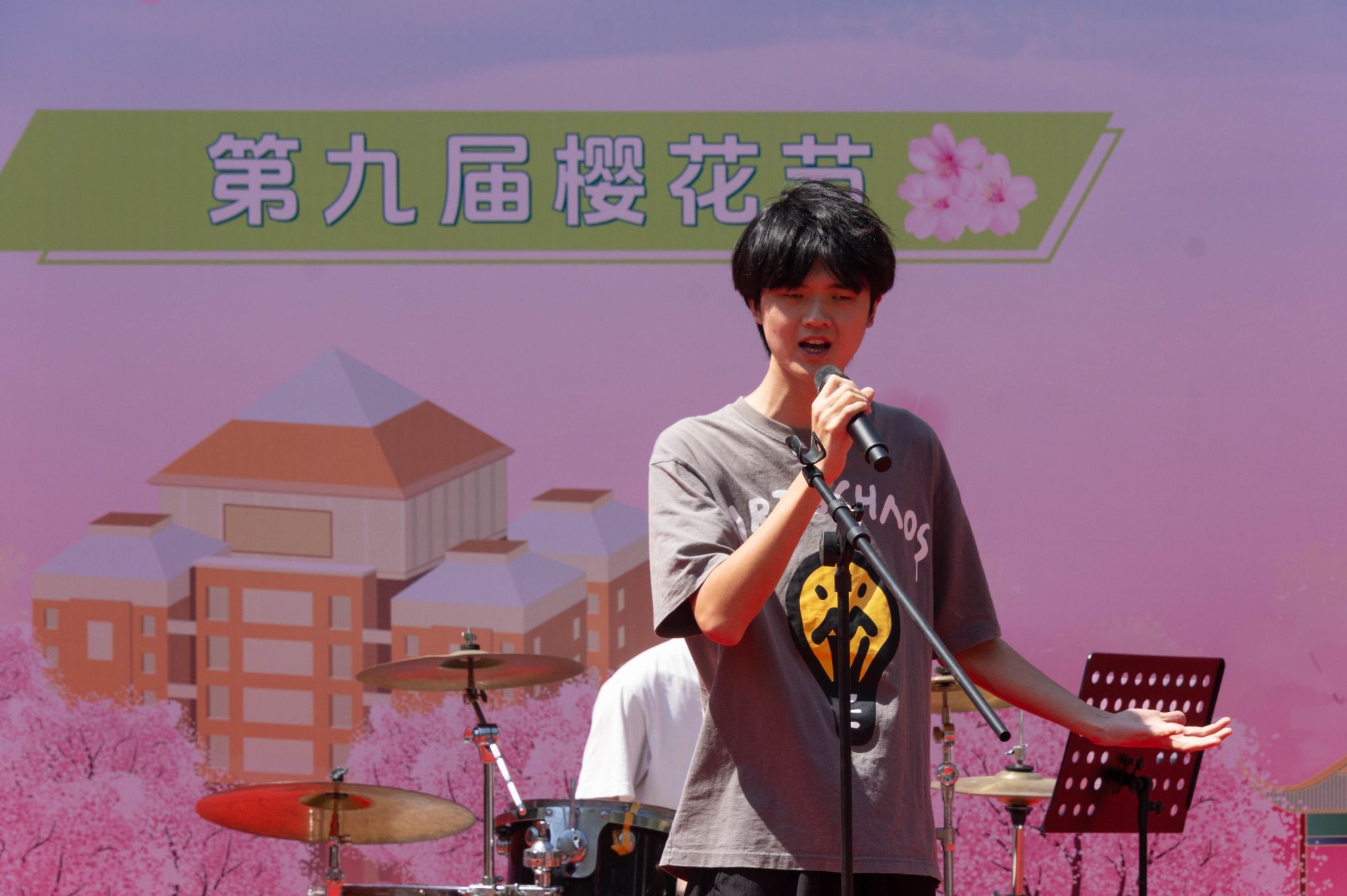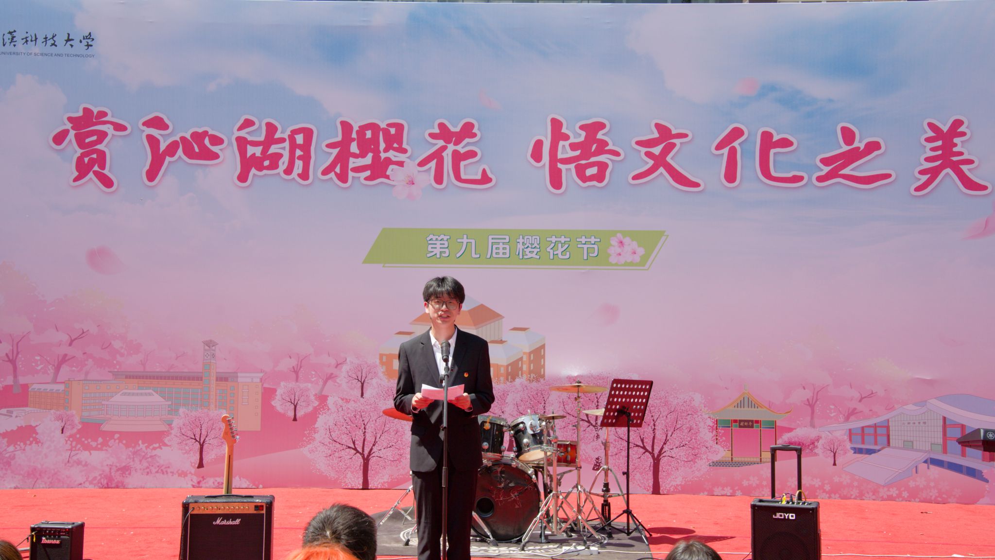 学生代表、社团管理部负责人刘新昊宣读樱花节倡议书 孙正恒摄
