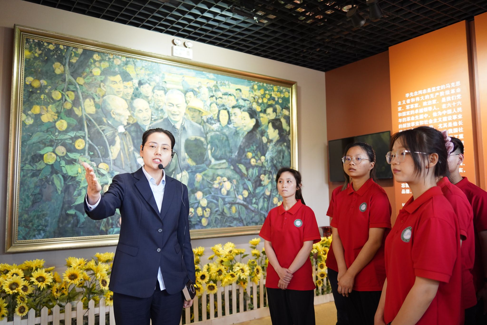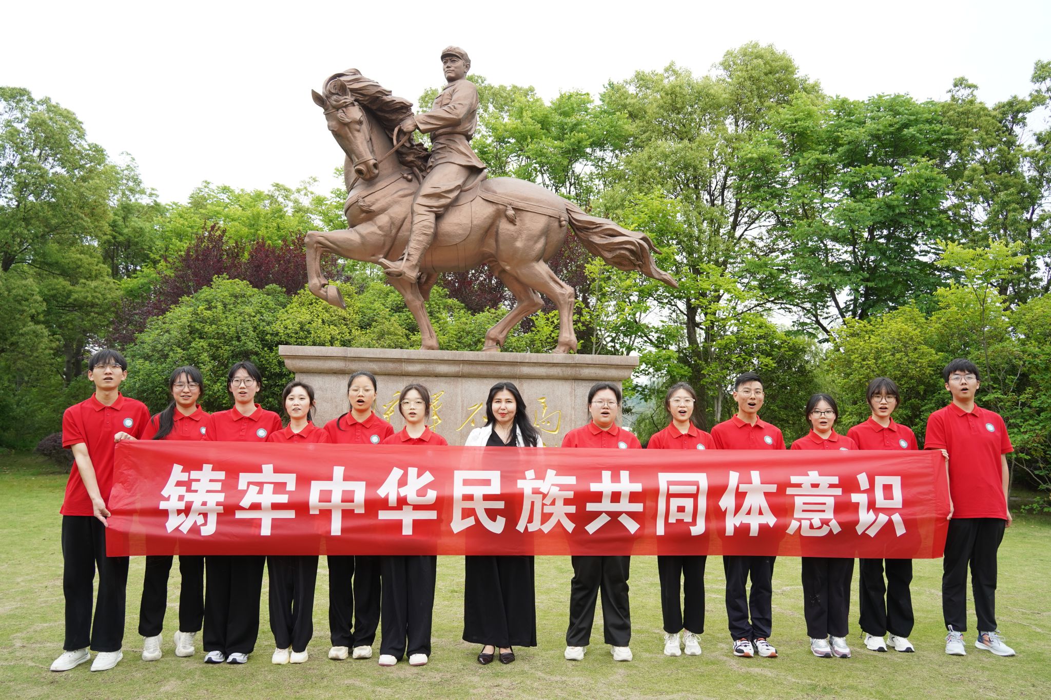 师生在李先念雕塑前合影 孙正恒摄