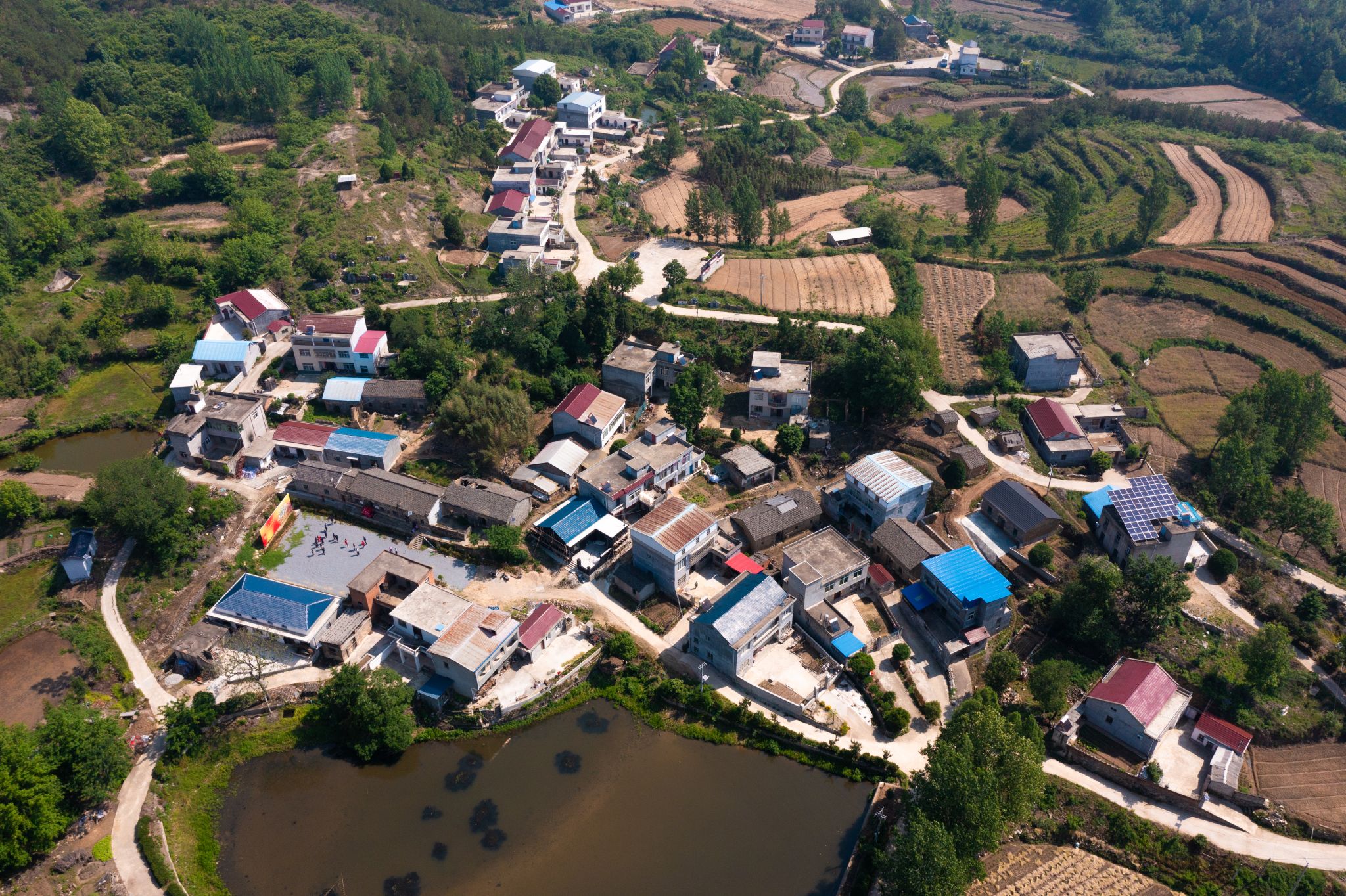 红安县七里坪镇马鞍山村鸟瞰 杨璨摄