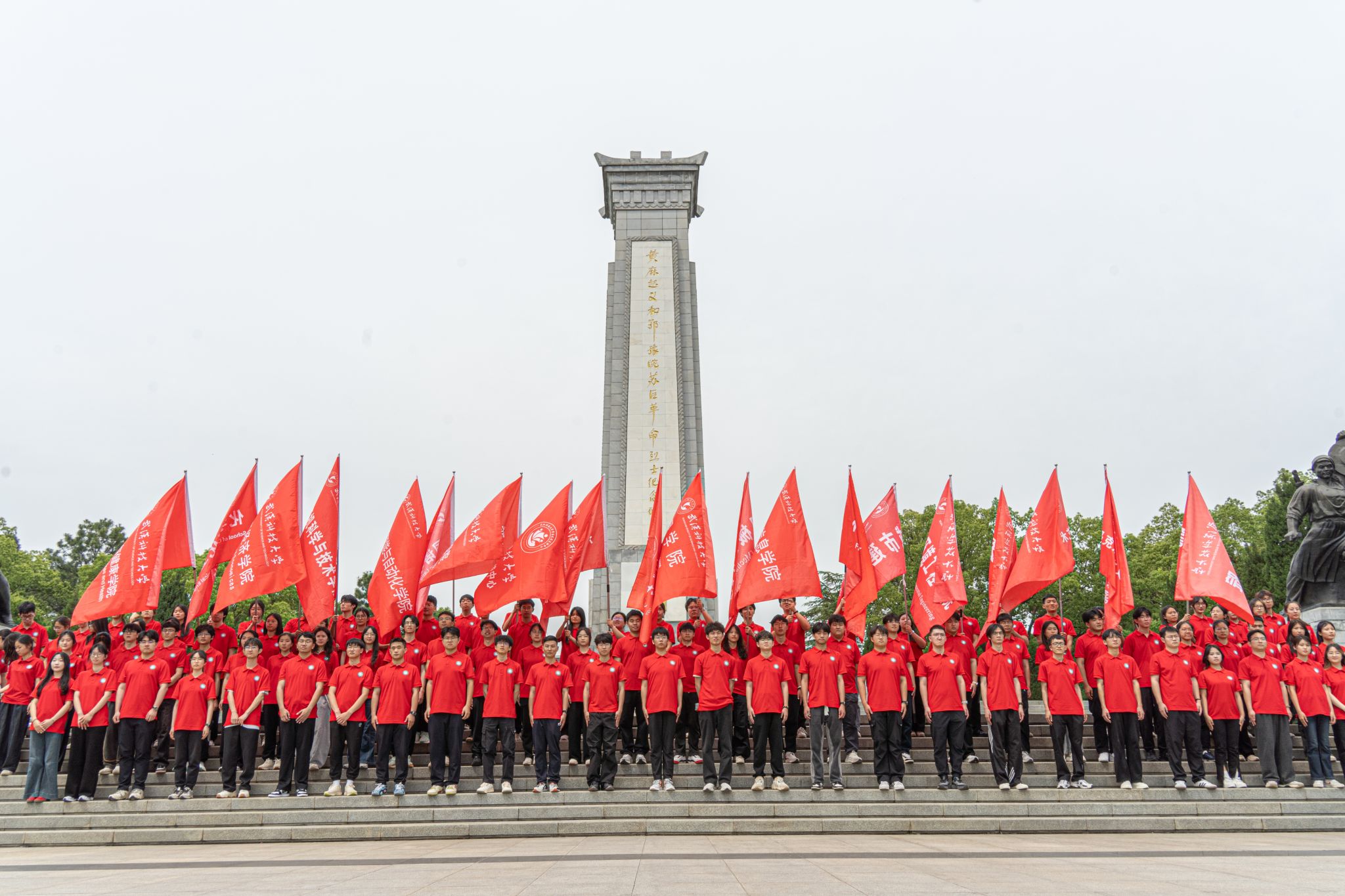 纪念碑下学生合影 孙正恒摄