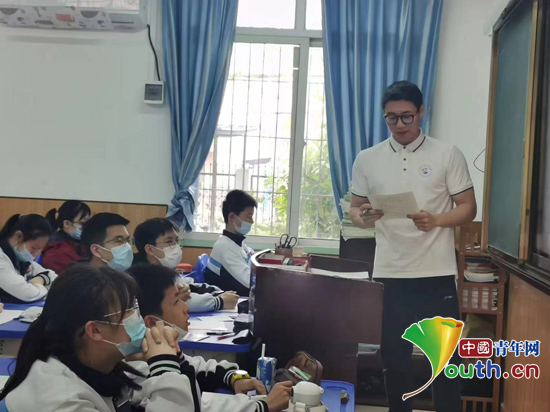 教学实习前两周,研支团成员们分别跟着学科指导老师认真听课备课,观摩学习授课方法、班级管理技巧等。课余时间,研支团成员与实习班级的同学们进行交流,了解他们的兴趣爱好,帮助他们辅导课后作业。