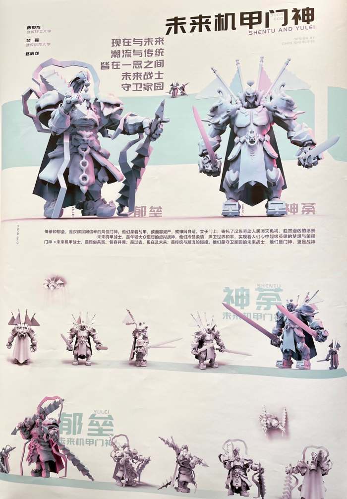 该校艺术与设计学院教授裴磊参与设计的《未来机甲门神》将门神与现代的机甲元素相融合,《楚夔凤纹虎座活化萌宠》更是融入了狴犴、楚夔凤纹和虎等传统文化元素。“传统文化与现代风格的结合既是雅俗共赏也是包容并兼。”据裴磊解释,师生们在深挖传统文化的同时结合现代的设计手法创新,设计出的作品是有古典文化底蕴的、有生命力的,也体现出对传统文化的自信。