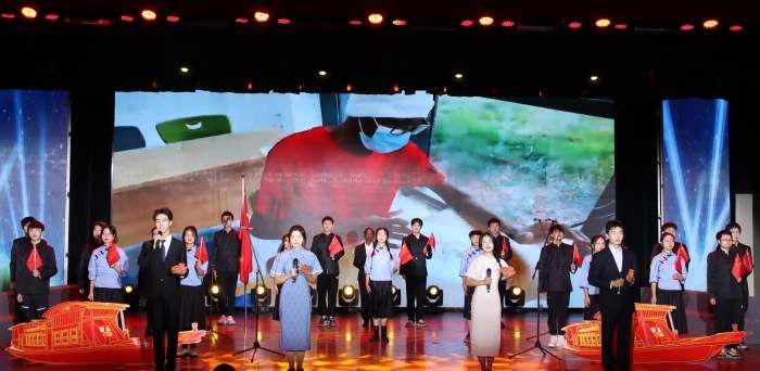 “中外双语讲党史,国际学子用自己的方式展现党的百年奋斗史。国际文化交流节,万国来客在这里感受中华五千年的历史底蕴!”一首《红船生辉引航国际》诗朗诵展现了国际学院的风采面貌。