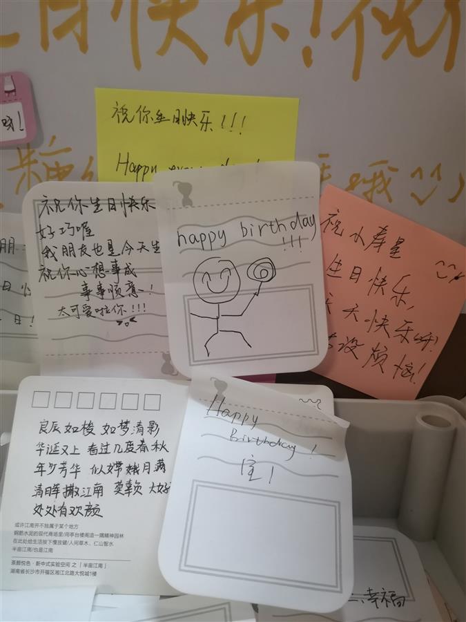 这个特别的纸箱很快引起了大家的注意,不少学生驻足拍照,留言祝福。黄昏时分,韦芳和室友取回纸箱,糖果已经被取用完毕,韦芳惊喜地发现,纸箱内除了祝福便签,还有同学回赠的礼物,如生日明信片和创作的诗歌,她逐一阅读同学们的祝福,感动得泪流满面,“这是我近几年来过的最有意义的生日,身边充满了温暖热心的人。”