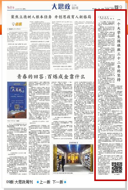 国旗班精神的感染,激励了许多队员奉献基层、奉献国防。看到边远地区教育的落后,2016年国旗班队员吴雯雯本科毕业后,选择奔赴湖北恩施州利川市民族中等职业技术学校参加为期一年的支教。“课余时间,我会给学生们讲国旗班故事、国旗小知识。”