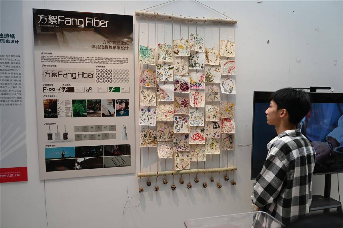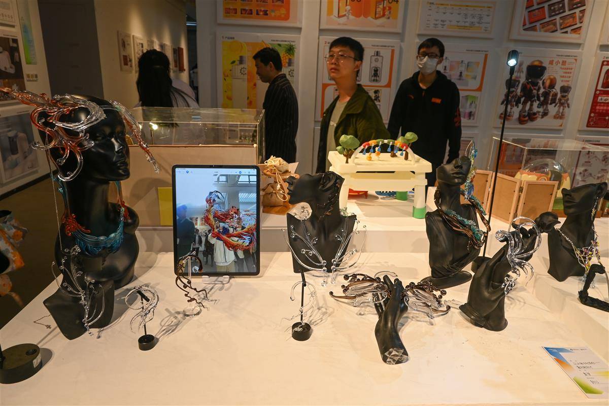 展览现场,互动感强的毕业作品吸引参观师生纷纷尝试。交互视觉传达设计专业学生韩佳琪说:“互动性的设计能够吸引公众前来学习了解非遗文化的历史、制作工艺及应用场景,让体验者探索更多非遗文化的内容。”