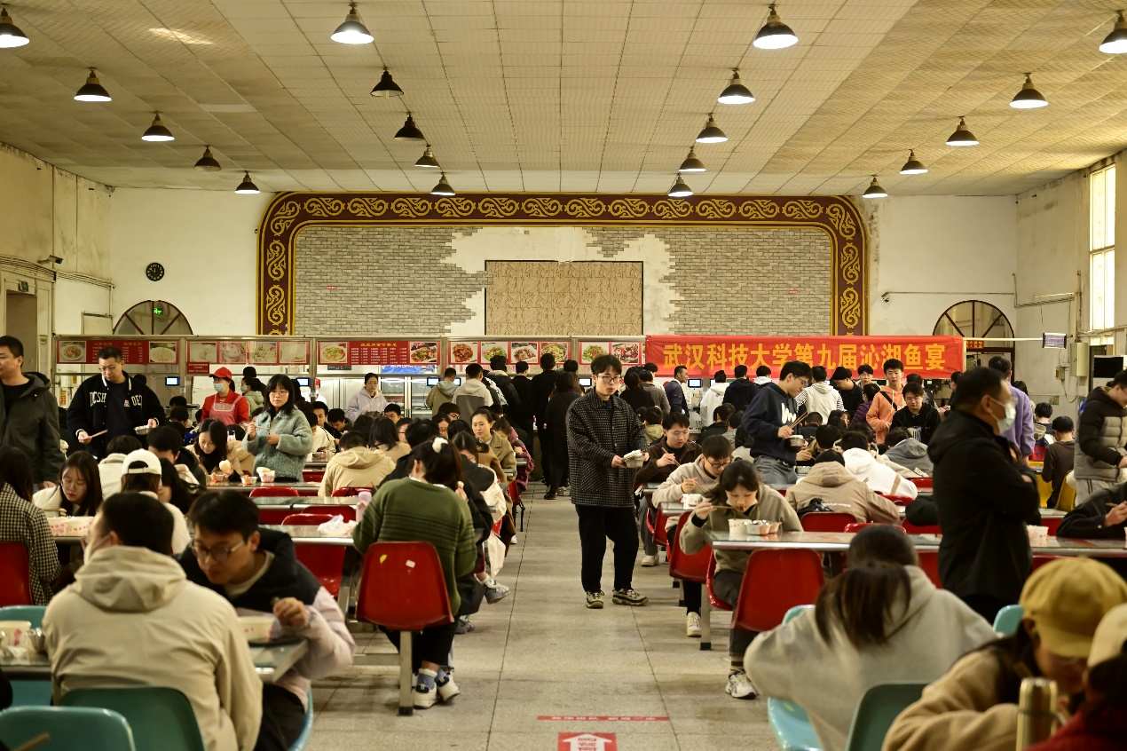 据武科大相关负责人陈孖川介绍,去年学校对沁湖进行了集中治理,并在冬至日投放了1万余斤鱼苗;今年5月组织学生喂养鱼类,10月下旬开始安排专人24小时值班护鱼;11月初开始放水赶鱼,以供校庆期间食用。“九年来,沁湖鱼宴推陈出新,参与度高、关注度高。年年在热搜上被广大网友称为‘别人家的学校’。”武科大校长倪红卫说。