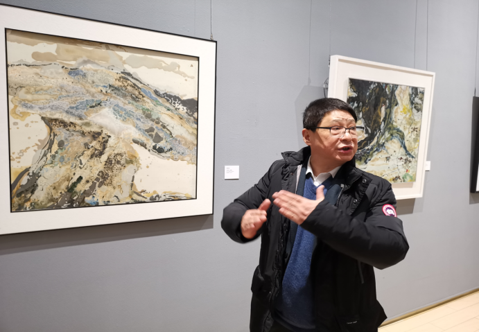 参展艺术家代表、武汉理工大学人文学部主任、“双一流”学科建设首席教授、博士生导师潘长学代表叶建新教授、管家庆教授向出席开幕式的各位领导、嘉宾、艺术同仁们表示欢迎和感谢,他谈道,汤湖美术馆以一种温和、详实的态度为湖北乃至全国的知名艺术家、青年艺术家搭建平台,真正的践行了“艺术为人民服务,艺术反映人民生活”的宗旨和使命。