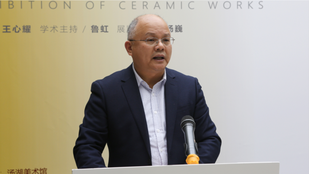 汤湖美术馆馆长王心耀在致辞中表示,叶建新教授将写意山水的洒脱与陶瓷的浑厚交融结合,从而让传统的工艺焕发出新的生命力。管家庆教授专注于釉变赋予陶瓷的一种偶得的、可变的、不可预知的审美创造,在物性之美中追寻象外之象的审美意境。潘长学教授巧妙地将设计理念植入陶瓷传统文化中,尝试在涌动的思绪与流动的陶瓷材料中寻求新的开拓。