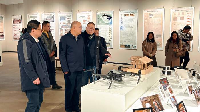 艺术学院二楼展出了该专业师生17年来实践的足迹与成果,师生先后考察鄂东南、鄂东北、鄂西南等多地区的19个传统村落,抵达过“靠山吃山”的咸宁芭蕉湾村、入选第三批“中国传统村落名录”的黄石枫杨庄、“中国原生态摆手舞发源地”恩施舍米湖等具备传统建筑资源优势与传统文化价值的村落。李一霏表示,师生17年来取得的测量数据资料均无偿提供给当地政府部门,为传统聚落、传统民居保护方面提供技术支持。未来该课程还将引入VR技术、3D渲染技术等科技手段,积极与村政府联系,实现资料信息共享,在传承优秀传统建筑工艺的同时为地方新农村建设和乡村振兴提供助力。