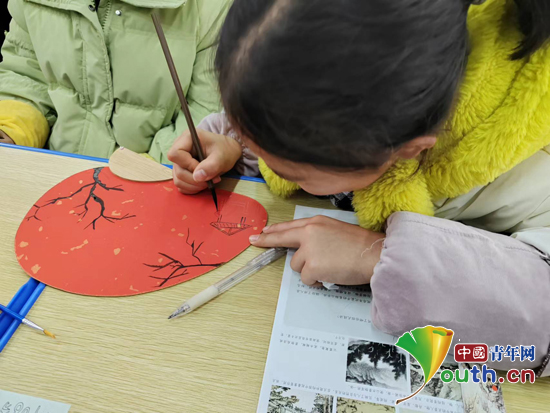 为了让二十四节日有更具象的表达,小雪时节,研支团成员组织学生开展团扇diy活动,向小朋友们详细讲解了彩绘团扇的绘制要点、上色要领、注意事项,并根据同学们的意愿分发了团扇、画笔和颜料。随后,学生们以“小雪”节气为主题,在空白的团扇上进行构图、绘制图案、调制颜色、上色,手握画笔精心设计、小心耐心的涂抹。在学生们的构思和精心设计下,一把把绘制精美的团扇被制作完成。手绘团扇不仅仅让同学们体验了动手绘制扇面的快乐,更进一步增进了同学们之间的情感交流,展现了中华民族传统工艺的魅力。